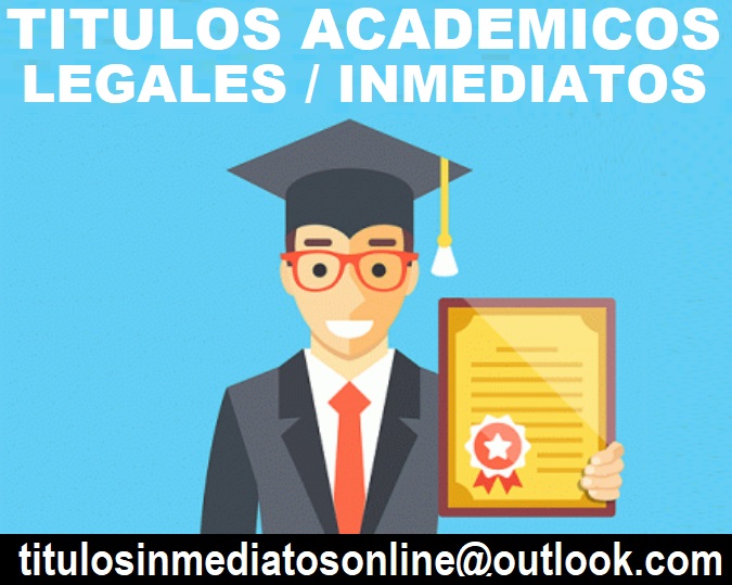 Vendemos titulos universitarios y de todo nivel, tecnico, instituto, bachiller, secundaria, primaria, idiomas, oficios etc, Servicio Mundial, titulos de universidades de todo PERU, toda ESPAÑA, todo ECUADOR, toda ARGENTINA, todo MEXICO, todo COLOMBIA, todo BOLIVIA, todo CHILE, todo URUGUAY, todo PARAGUAY, todo GUATEMALA, todo DOMINICANA, todo COSTA RICA, todo CUBA, todo VENEZUELA Y MUCHOS MAS, tramitamos y registramos legalmente, titulos de alta calidad, validos para tramites, comprobables, ENVIAMOS A TU CASA, con los papeles adjuntos que necesites, trabajamos para cualquier pais del mundo, para coordinar por WHATSAPP escribe al CORREO: titulosinmediatosonline@outlook .com