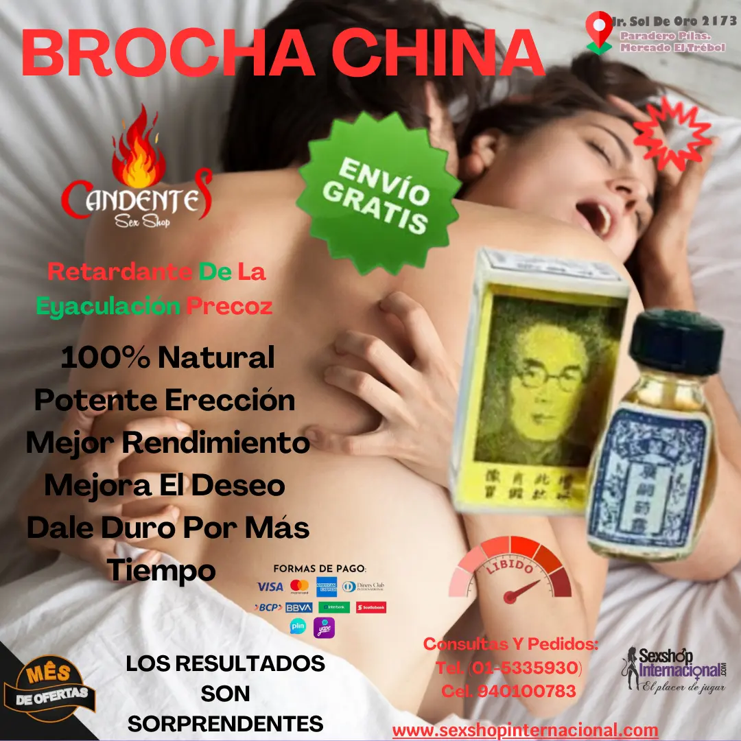 BROCHA CHINA Retardante De La Eyaculación Precoz 100% Natural, Potente Erección, Mejor Rendimiento, Mejora El Deseo, Dale Duro Por Más Tiempo. Somos Una Empresa Dedicada A La Venta De Productos Originales Para Adultos. VISITA NUESTRA TIENDA FISICA En Los Olivos Ref. Altura paradero Pilas, Panamericana con Angelica Gamarra, frente al Mercado El Trébol 2173. Realizamos Envió Nacionales E Internacionales. Contamos Con Delivery En Todo Lima Gratis. Productos 100% Garantizados. Consultas Y Pedidos: Tel. (01-5335930) Cel. 940100783 VISITA NUESTRAS PAGINAS WEB: www.sextoyslima.com www.tiendasamor.com www.vigrx.pe www.oficialtitangel.com www.alfamanperu.com https://nutricionsexualforte.com/ https://bioprostoriginal.com/ Le Ofrecemos Artículos De La Más Alta Calidad, A Precios Muy Económicos. Pregunta Por Las Ofertas De Cada Semanas. VISITA NUESTRA TIENDA FÍSICA TE ESPERAMOS.