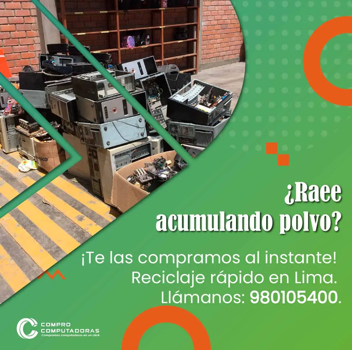 ¿Tienes computadoras que ya no usas? ¡Nosotros las compramos! Funcionen o no, les damos una nueva vida con una solución de reciclaje responsable. Libera espacio, cuida el medio ambiente y obtén dinero al instante. Operamos en toda Lima para tu comodidad. Contáctanos al 980105400 y convierte tus equipos en una oportunidad hoy mismo.