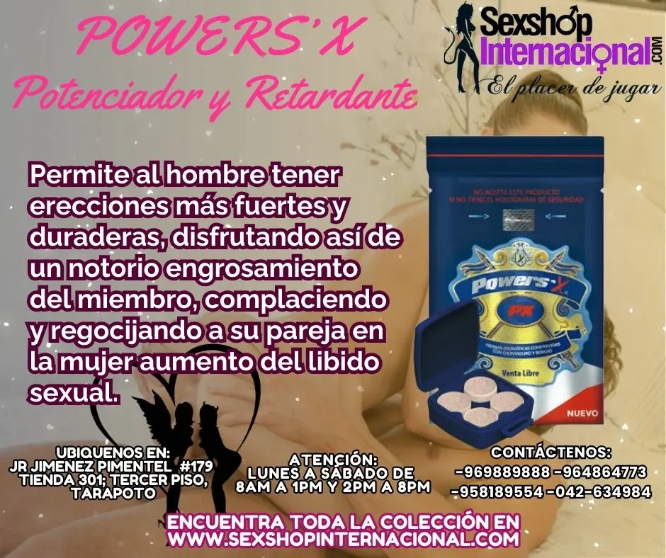 Permite al hombre tener erecciones más fuertes y duraderas, disfrutando así de un notorio engrosamiento del miembro, complaciendo y regocijando a su pareja y aumentando el libido sexual, SEXSHOP INTERNACIONAL TARAPOTO. Autorizado para la distribución y comercialización de productos, juguetes y suplementos para adultos. Nos puede ubicar en el Jr. Jimenez Pimentel #179 Tienda -301 Tercer Piso- TARAPOTO-PERU REF:ALTURA PLAZA DE ARMAS COSTADO DE CAJA HUANCAYO Realizamos envíos a nivel nacional e internacional. https://sexshopinternacional.com/ Contactenos: 969889888 964864773 958189554 042-634984