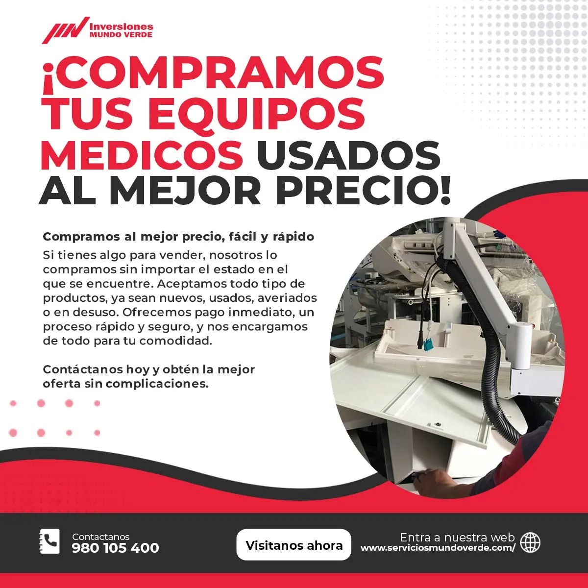 ¿Tienes equipos medicos en desuso ocupando espacio? ¡Nosotros las compramos! Funcionen o no, les damos una segunda vida a través de un reciclaje responsable. Operamos en toda Lima, ayudándote a liberar espacio y ganar dinero de manera rápida y sencilla. Contáctanos: 980105400 y dale un nuevo valor a tus equipos.