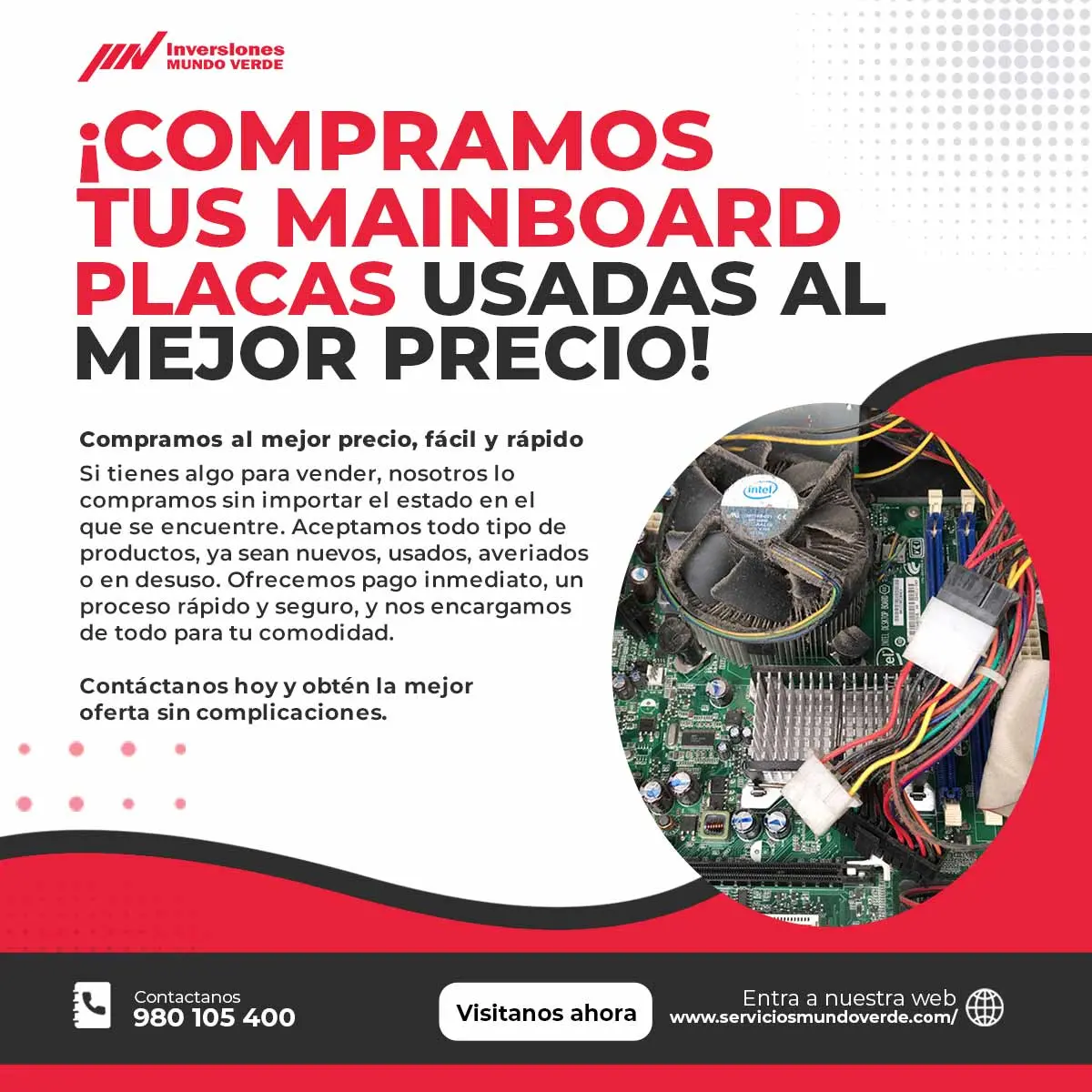 ¿Tienes placas en desuso ocupando espacio? ¡Nosotros las compramos! Funcionen o no, les damos una segunda vida a través de un reciclaje responsable. Operamos en toda Lima, ayudándote a liberar espacio y ganar dinero de manera rápida y sencilla. Contáctanos: 980105400 y dale un nuevo valor a tus equipos.
