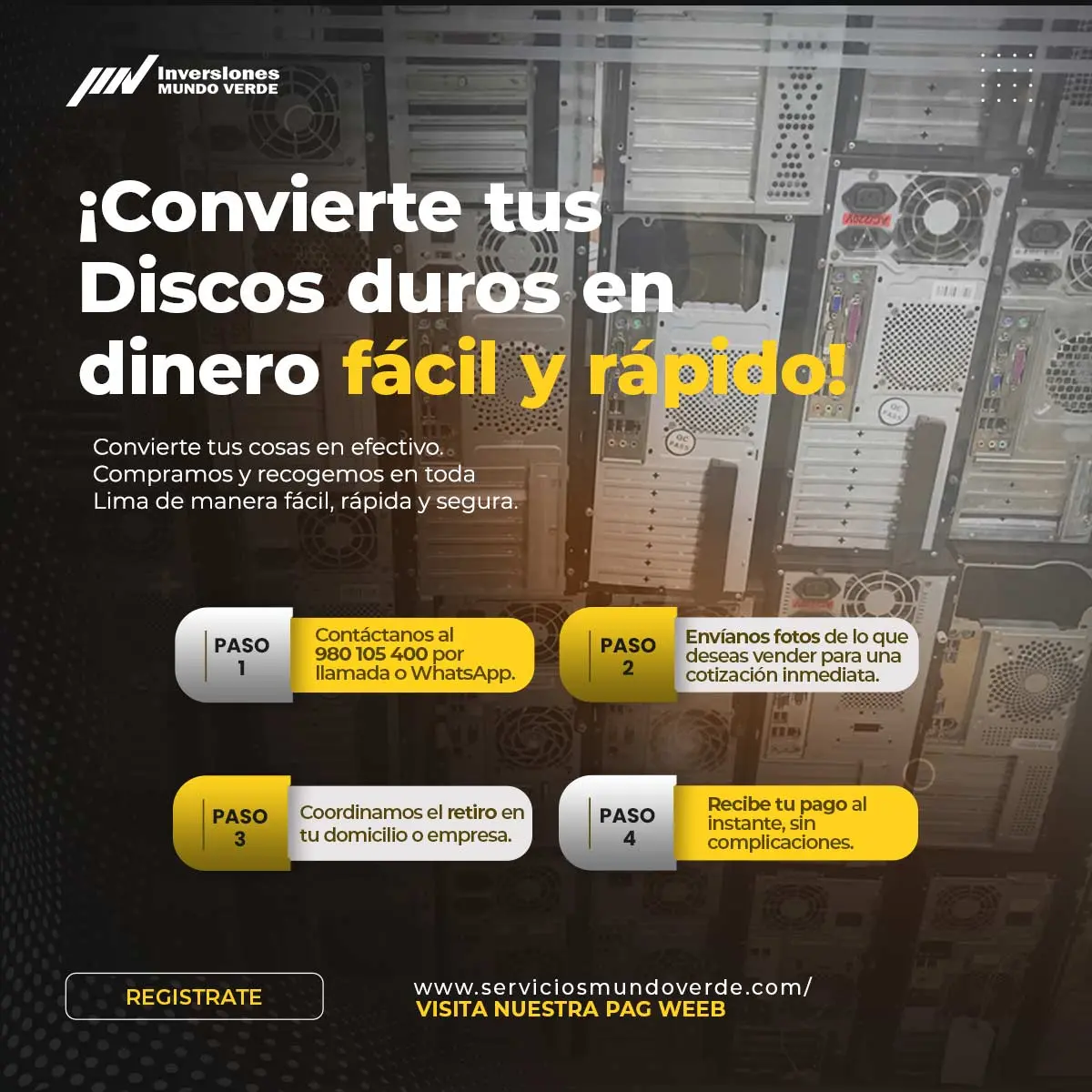 ¿Tienes computadoras en desuso acumulando polvo? Nosotros las compramos, ya sea que estén en uso o fuera de funcionamiento. Ofrecemos una solución de reciclaje responsable y efectiva en toda Lima, ayudándote a liberar espacio y obtener dinero rápidamente. ¡Contáctanos hoy y dale un valor renovado a tus equipos! Contactanos: 980105400