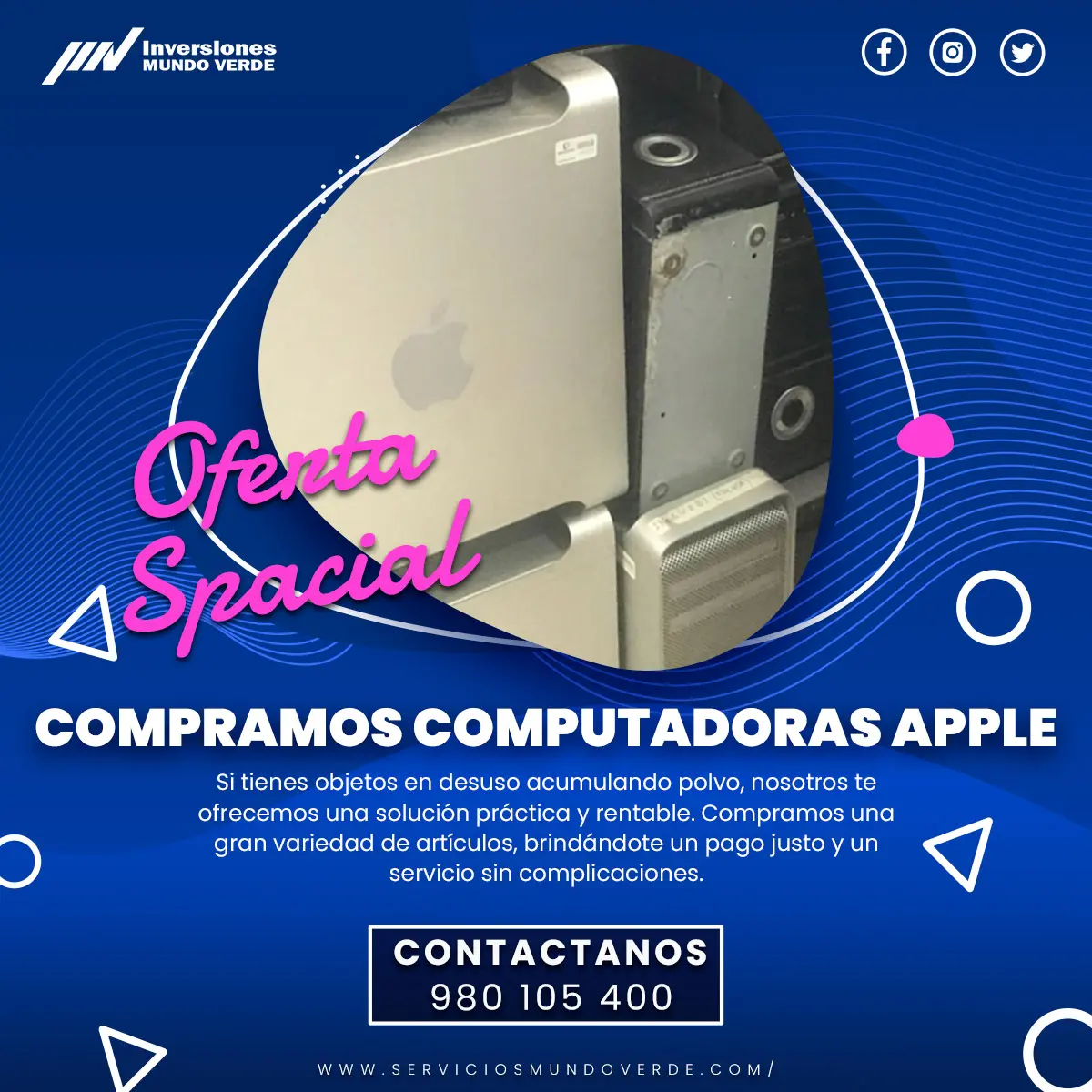¿Tienes computadoras apple en desuso acumulando polvo? ¡Nosotros las compramos! Ya sea que aún funcionen o estén fuera de servicio, te ofrecemos una solución de reciclaje responsable y efectiva en toda Lima. Libera espacio, ayuda al medio ambiente y recibe dinero por tus equipos de manera rápida y segura. Contáctanos hoy mismo: 980105400