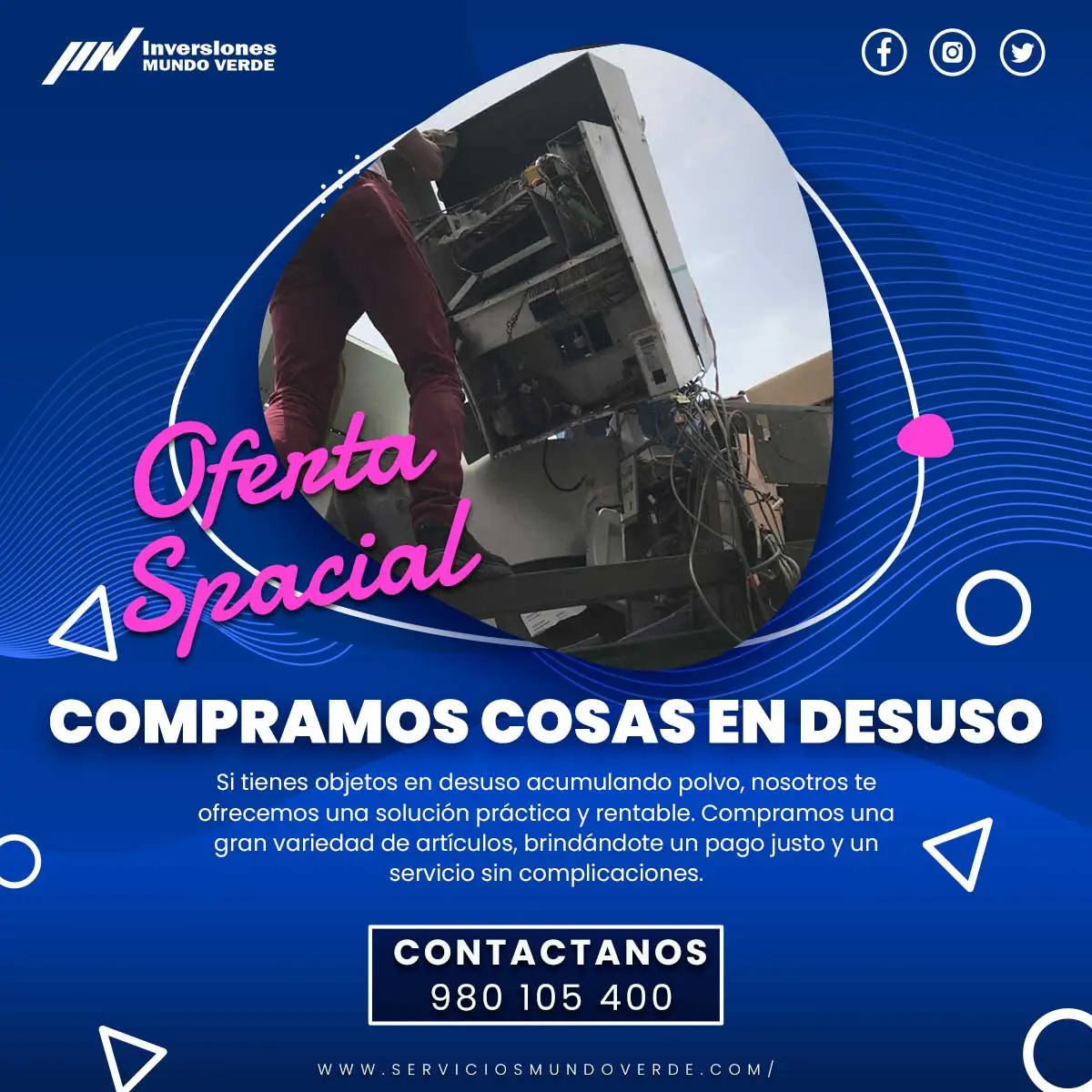 ¿Tienes cosas en desuso acumulando polvo? ¡Nosotros las compramos! Ya sea que aún funcionen o estén fuera de servicio, te ofrecemos una solución de reciclaje responsable y efectiva en toda Lima. Libera espacio, ayuda al medio ambiente y recibe dinero por tus equipos de manera rápida y segura. Contáctanos hoy mismo: 980105400
