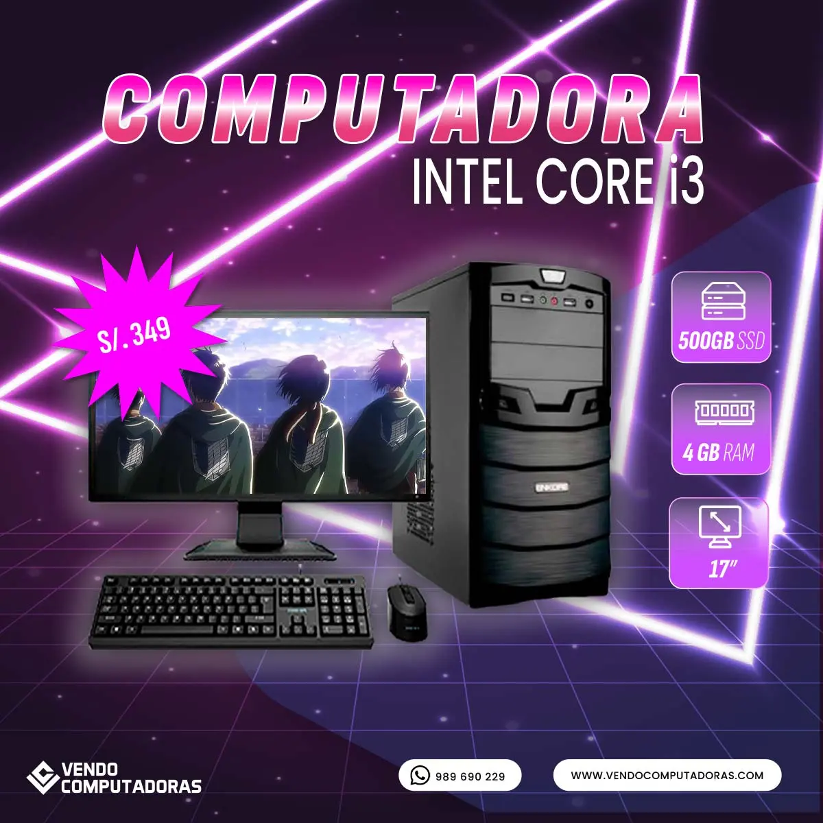 Computadora Completa al Mejor Precio Core i3 4GB RAM Monitor 17" Perfecta para el hogar, la oficina o el estudio. ¡Incluye accesorios esenciales GRATIS! Oferta limitada hasta agotar stock. Escríbenos ya y obtén la tuya.