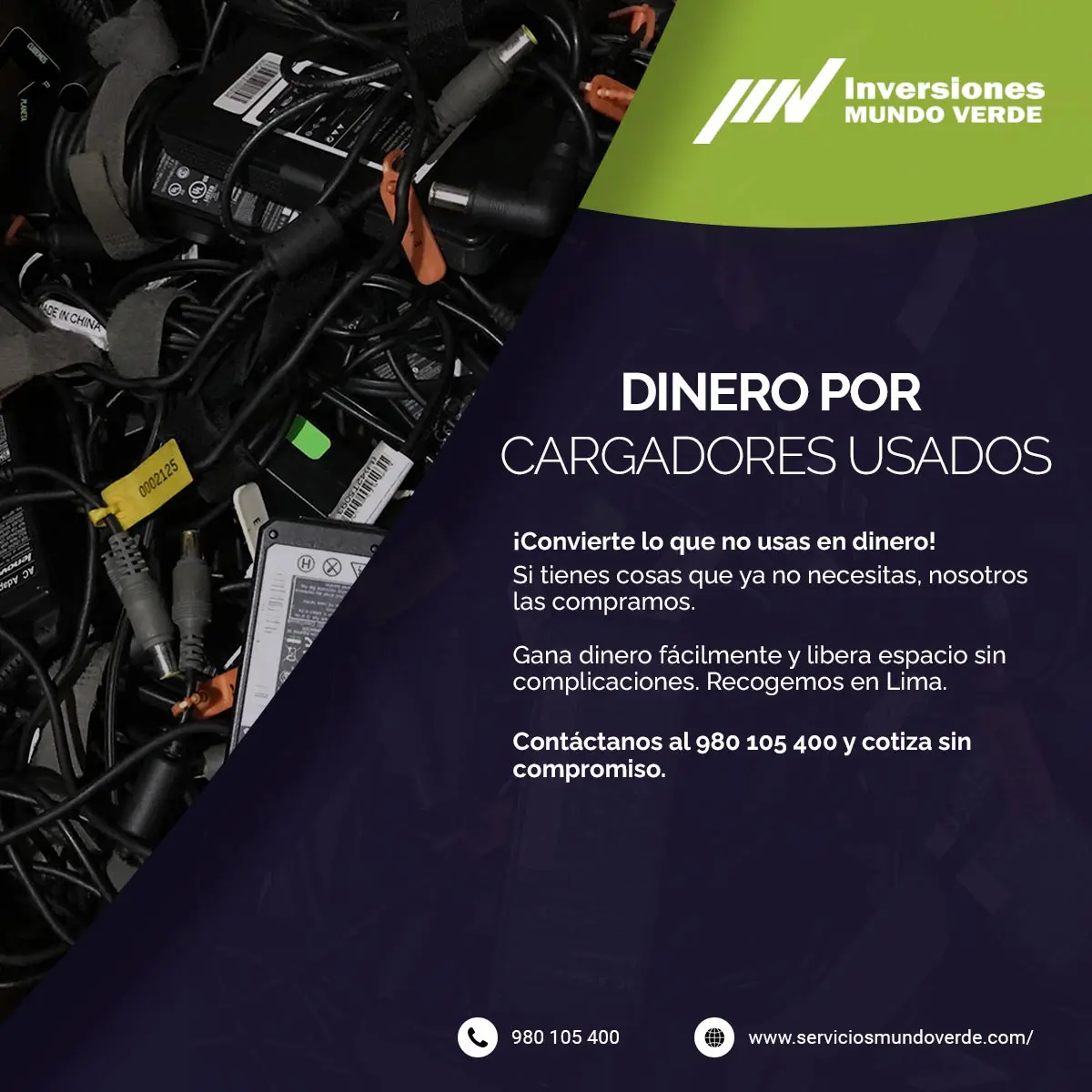 ¿Tienes cargadores en desuso acumulando polvo? Nosotros los compramos, estén en uso o fuera de funcionamiento. Ofrecemos una solución de reciclaje responsable y efectiva en toda Lima, ayudándote a liberar espacio y obtener dinero rápidamente. Contáctanos hoy: 980105400