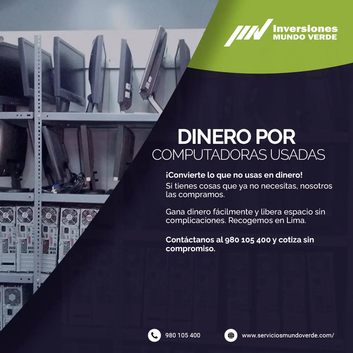 ¿Tienes computadoras en desuso acumulando polvo? Nosotros las compramos, estén en uso o fuera de funcionamiento. Ofrecemos una solución de reciclaje responsable y efectiva en toda Lima, ayudándote a liberar espacio y obtener dinero rápidamente. Contáctanos hoy: 980105400
