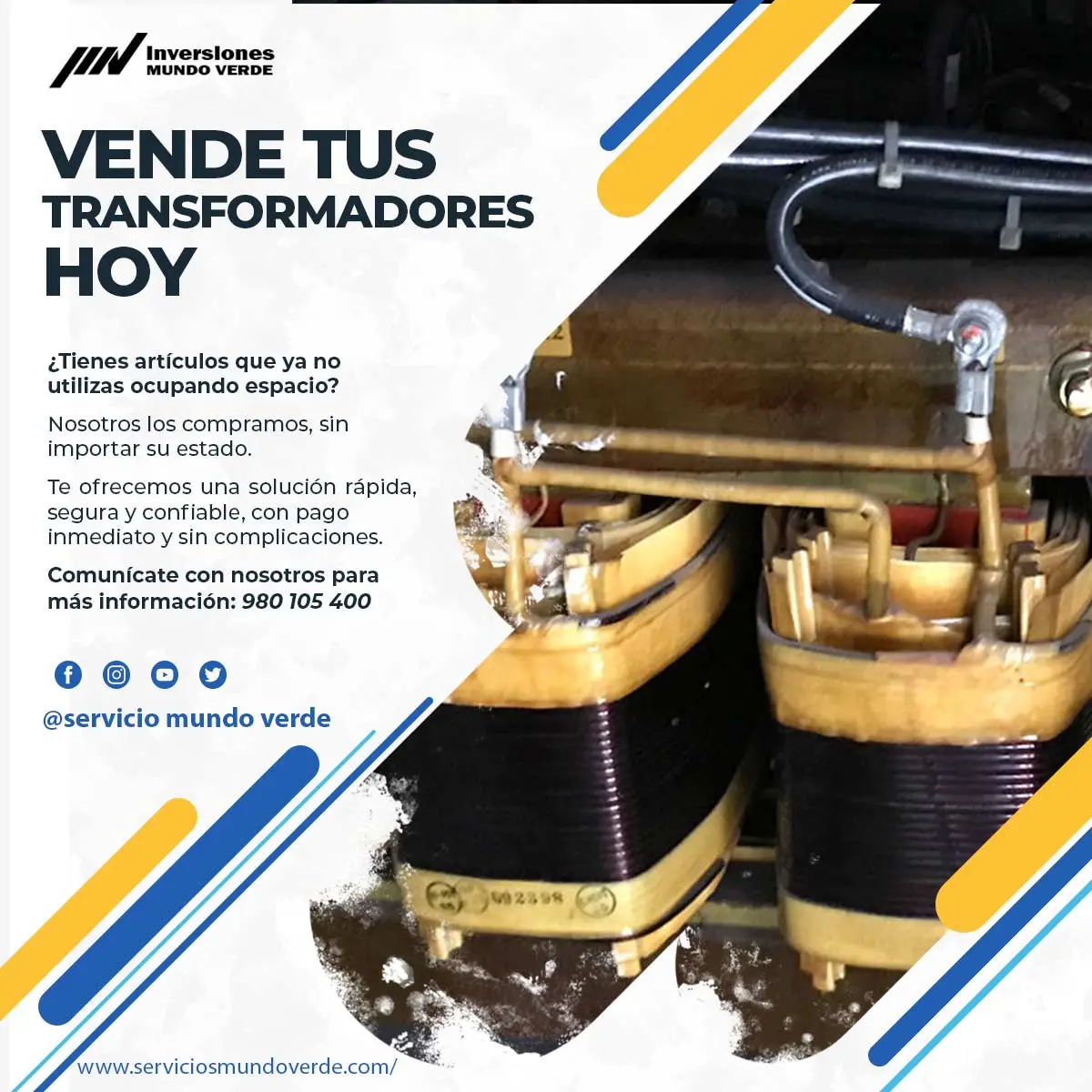 ¿Tienes transformadores en desuso ocupando espacio? Nosotros los compramos, sin importar su estado, ya sea en funcionamiento o fuera de servicio. Ofrecemos una solución rápida y efectiva en toda Lima, ayudándote a liberar espacio y obtener dinero al instante. ¡Contáctanos hoy y dale un nuevo valor a tus equipos! Contáctanos: 980105400