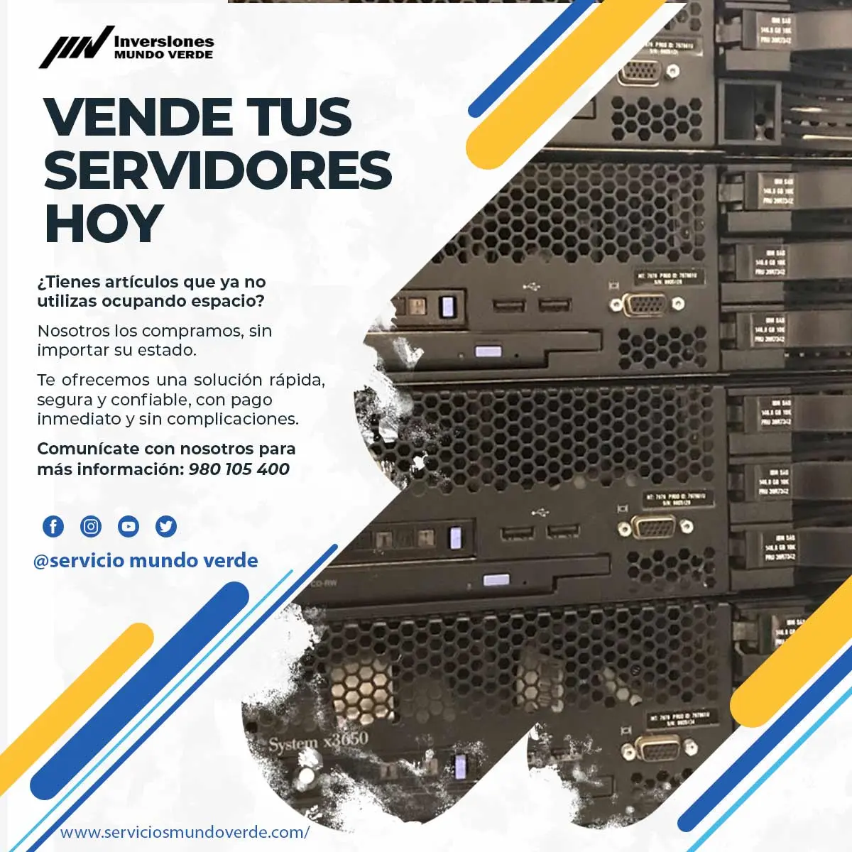 ¿Tienes servidores en desuso acumulando polvo? Nosotros los compramos, sin importar su estado, ya sea en funcionamiento o fuera de servicio. Te ofrecemos una solución rápida y efectiva en toda Lima, ayudándote a liberar espacio y obtener dinero al instante. ¡Contáctanos hoy y dale un nuevo valor a tus equipos! Contáctanos: 980105400