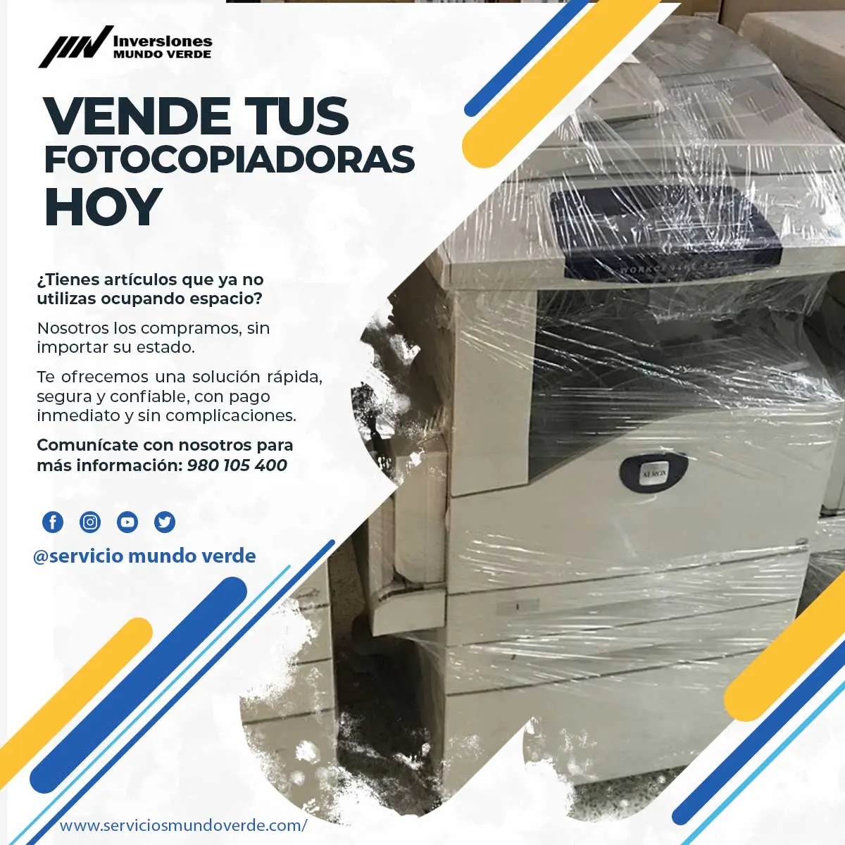 ¿Tienes fotocopiadora en desuso acumulando polvo? Nosotros los compramos, sin importar su estado, ya sea en funcionamiento o fuera de servicio. Te ofrecemos una solución rápida y efectiva en toda Lima, ayudándote a liberar espacio y obtener dinero al instante. ¡Contáctanos hoy y dale un nuevo valor a tus equipos! Contáctanos: 980105400