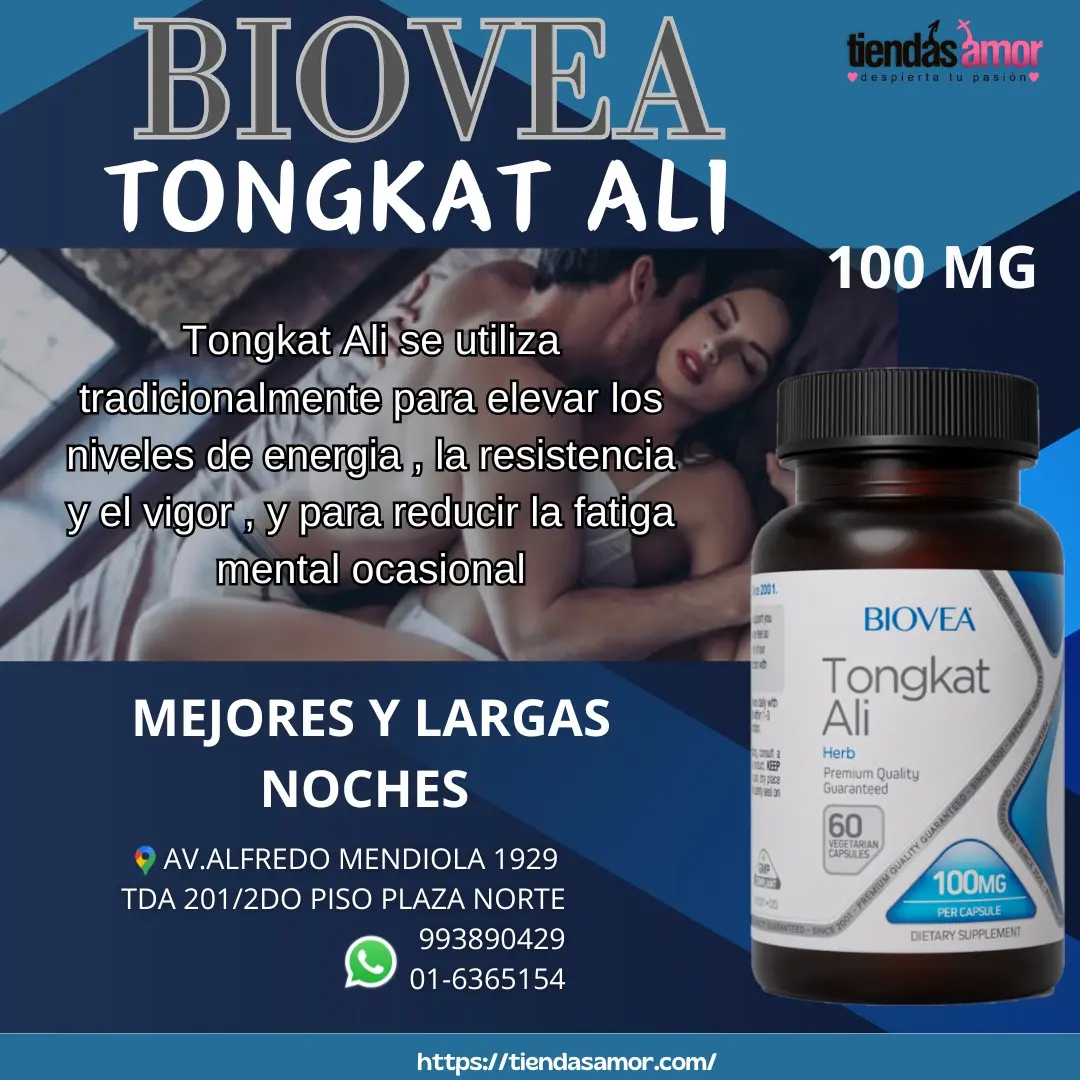 Tongkat Ali se utiliza tradicionalmente para elevar los niveles de energía, la resistencia y el vigor, y para reducir la fatiga mental ocasional. Apoya el equilibrio hormonal masculino Aumenta la producción de ATP Estimula la libido y mejora el desempeño sexual MES DE LAS OFERTAS Porque Nos Volvimos Locos Con Descuentos EN TODAS NUESTRAS CATEGORÍAS Horario De Atención De Lunes A sábado De 9 Am A 8pm Y Domingo De 9 Am A 7.20 Pm Productos Americanos De IMPORTACIÓN Y CALIDAD. GARANTÍA NUESTRO SELLO CATALOGO En Sus WEBS OFICIALES: sexshopinternacional.com tiendasamor.com nutricionsexualforte.com potenciasexualforte.com testoultra.com.pe testoultra.pe testoultraperu.com testo360peru.com anabolicrx24peru.com oficialtitangel.com vigor360oficial.com alfamanperu.com bioprostoriginal.com vigrx.pe INFORMACIÓN AL:993890429 969889888 964864773 Fijo: (01)6365154 UBICACIÓN: Av Alfredo Mendiola 1929 Tda. 201 Ref. Cruce Panamericana con Tomas Valle OTRAS SEDES: Puente Piedra ,1 Ra Pro-Los Olivos, Frente Metro-Izaguirre, Frente Plaza Norte, Miraflores, Pucallpa Y Tarapoto DELIVERY EN TODO LIMA METROPOLITANA Y ENVIOS NACIONALES E INTERNACIONALES