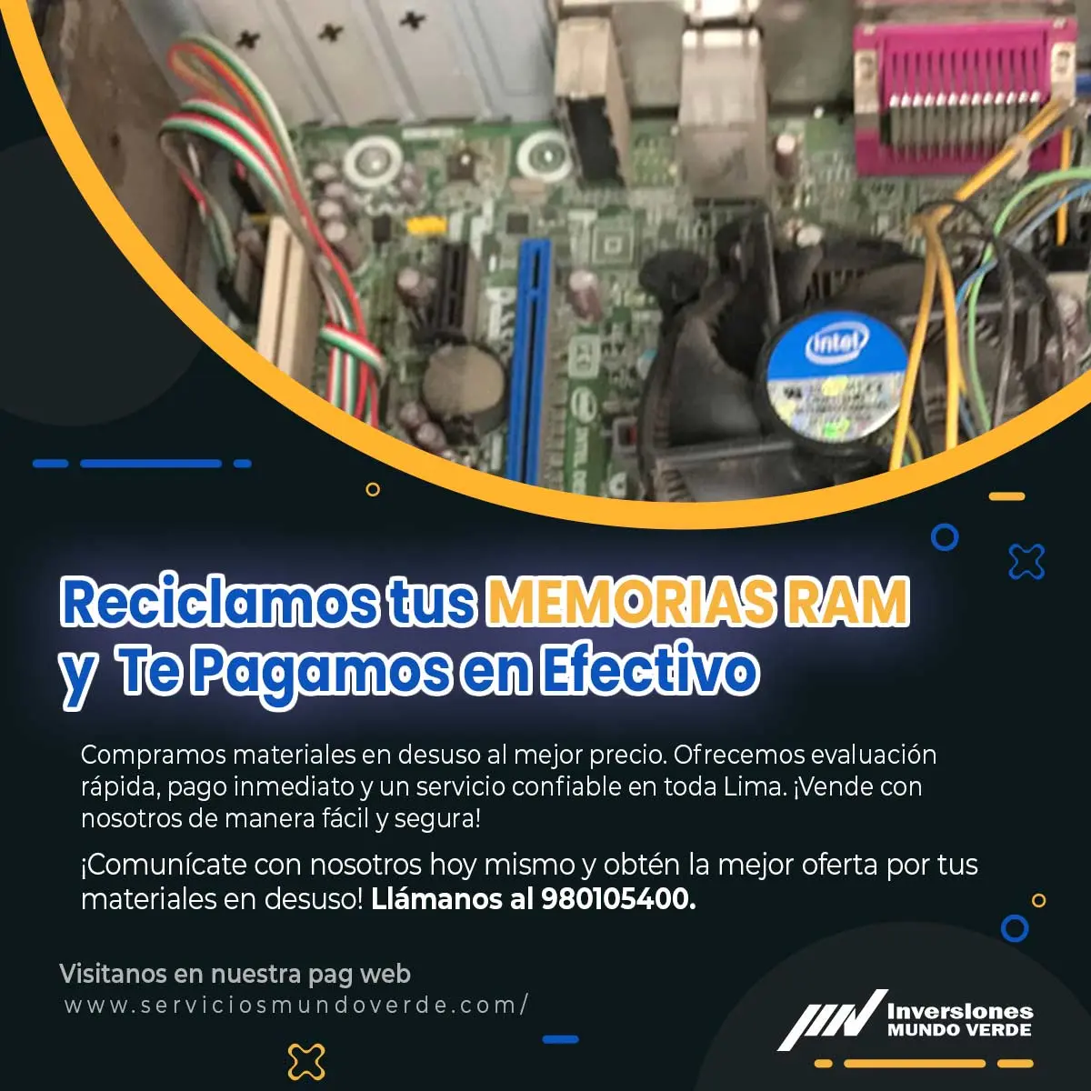 ¿Tienes memorias RAM en desuso en casa ocupando espacio? ¡Nosotros las compramos! No importa si funcionan o no, te ofrecemos una solución rápida y segura en toda Lima. Libera espacio y recibe dinero al instante. Contáctanos: 980105400