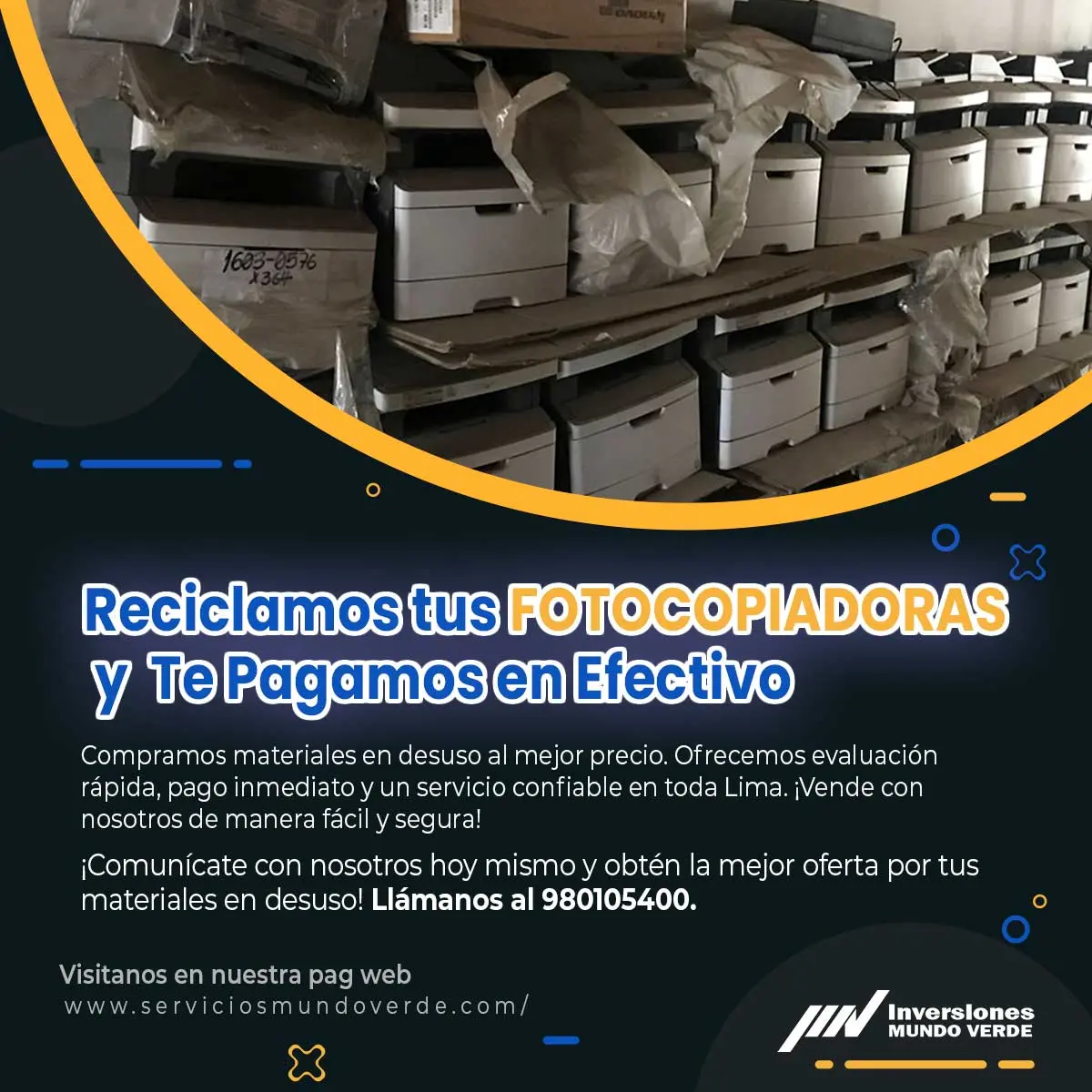 ¿Tienes fotocopiadoras en desuso en casa u oficina ocupando espacio? ¡Nosotros las compramos! No importa si funcionan o no, te ofrecemos una solución rápida y segura en toda Lima. Libera espacio y recibe dinero al instante. Contáctanos: 980105400