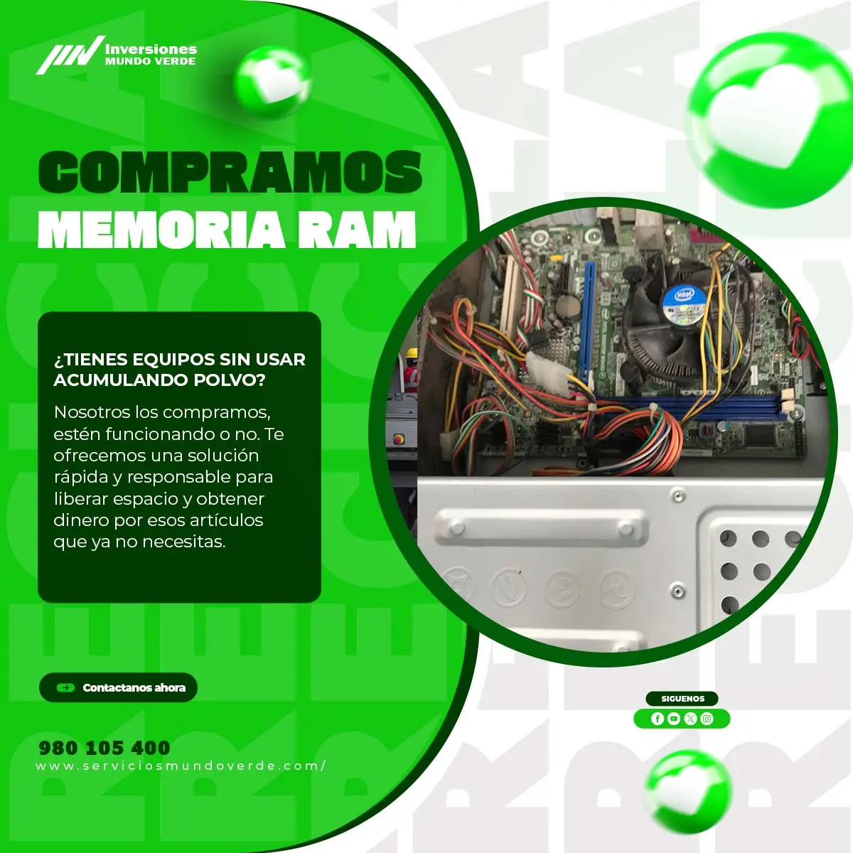 ¿Tienes memorias RAM en desuso en casa ocupando espacio? ¡Nosotros las compramos! No importa si funcionan o no, te ofrecemos una solución rápida y segura en toda Lima. Libera espacio y recibe dinero al instante. Contáctanos: 980105400