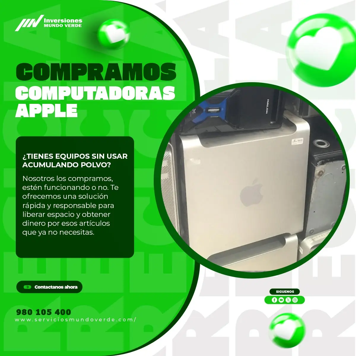 ¿Tienes computadoras Apple en desuso ocupando espacio? ¡Nosotros las compramos! No importa si funcionan o no, te ofrecemos una solución rápida y segura en toda Lima. Libera espacio y recibe dinero al instante. Contáctanos: 980105400