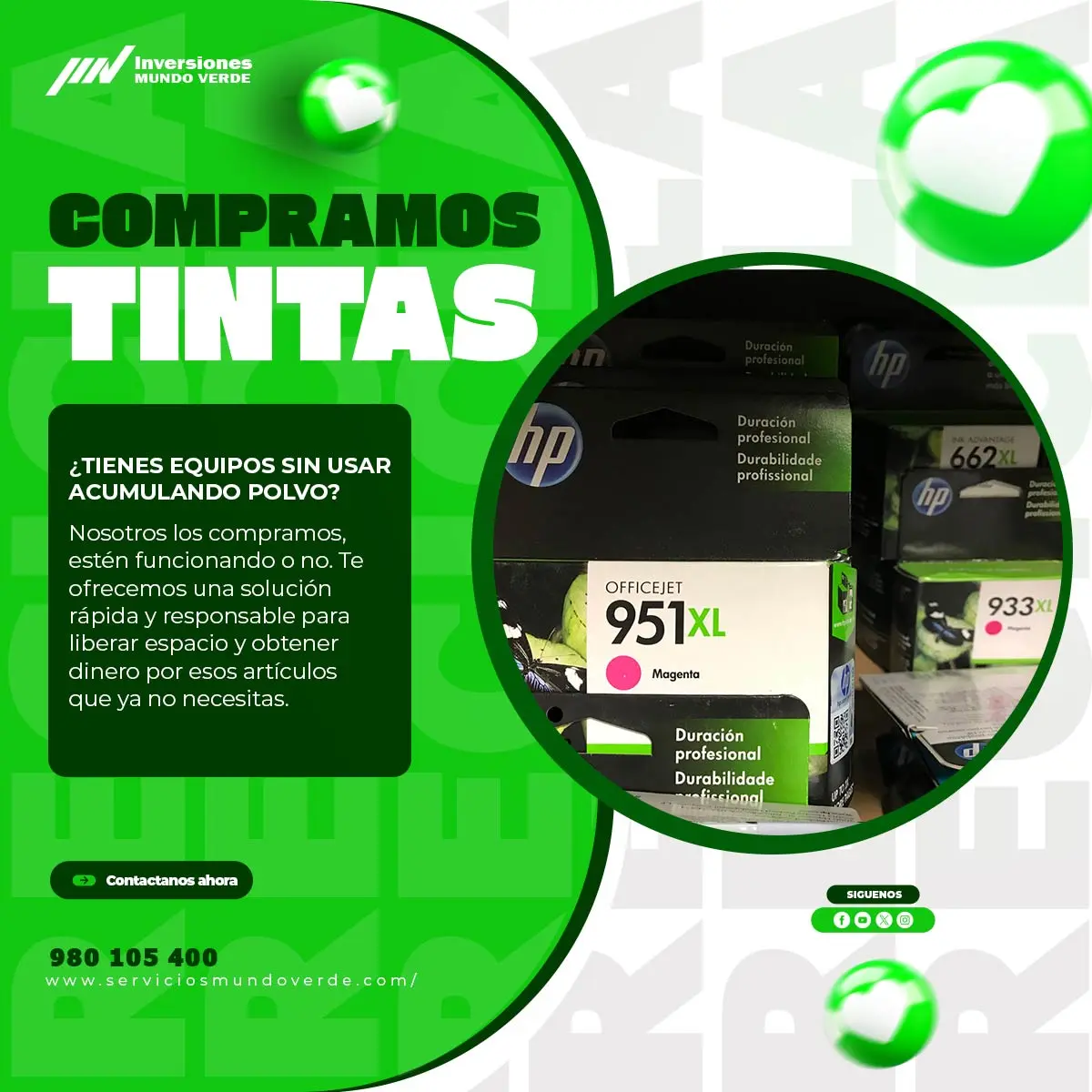 ¿Tienes tintas en desuso ocupando espacio? ¡Nosotros las compramos! No importa si están nuevas o vencidas, te ofrecemos una solución rápida y segura en toda Lima. Libera espacio y recibe dinero al instante. Contáctanos: 980105400