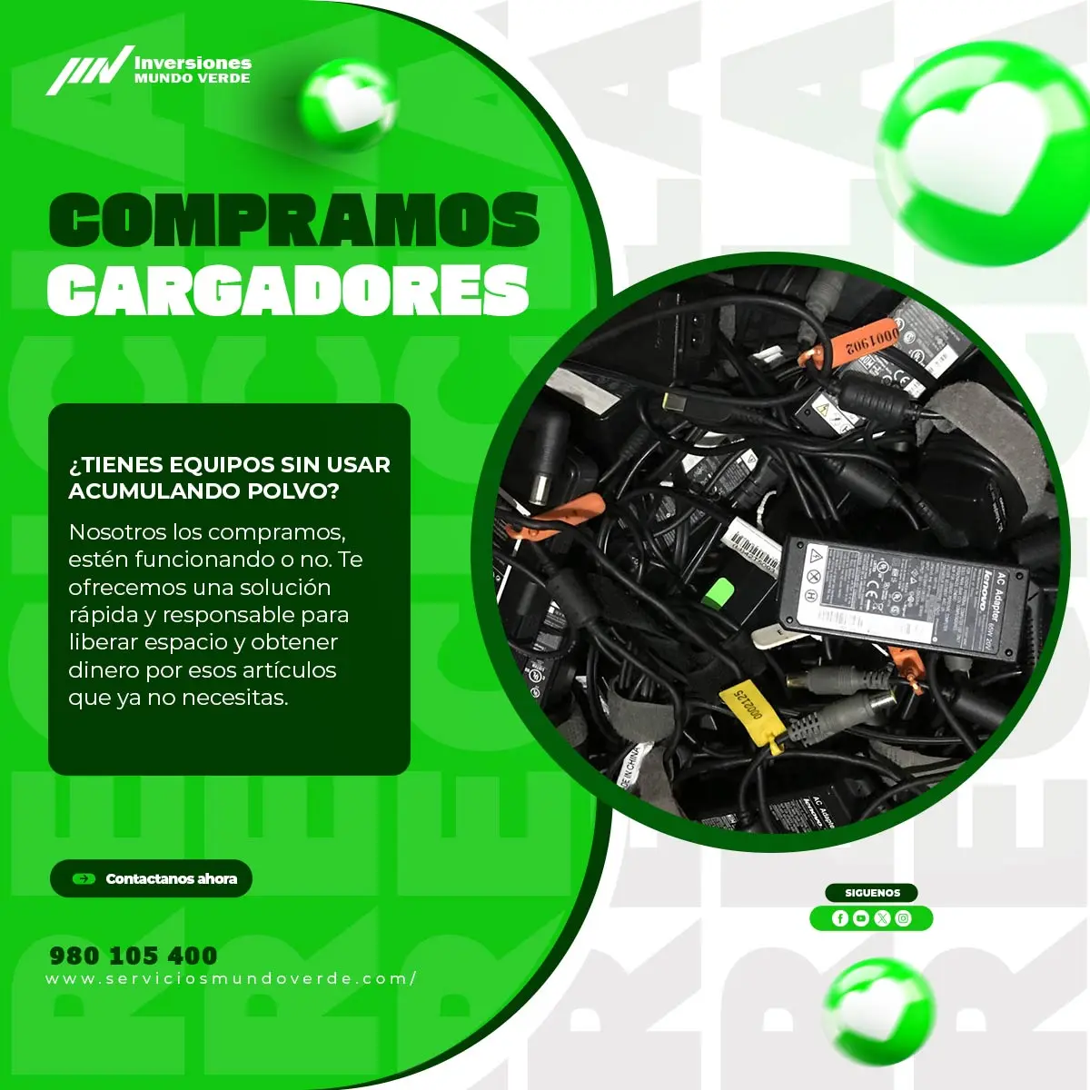 ¿Tienes cargadores en desuso ocupando espacio? ¡Nosotros los compramos! No importa si funcionan o no, te ofrecemos una solución rápida y segura en toda Lima. Libera espacio y recibe dinero al instante. Contáctanos: 980105400