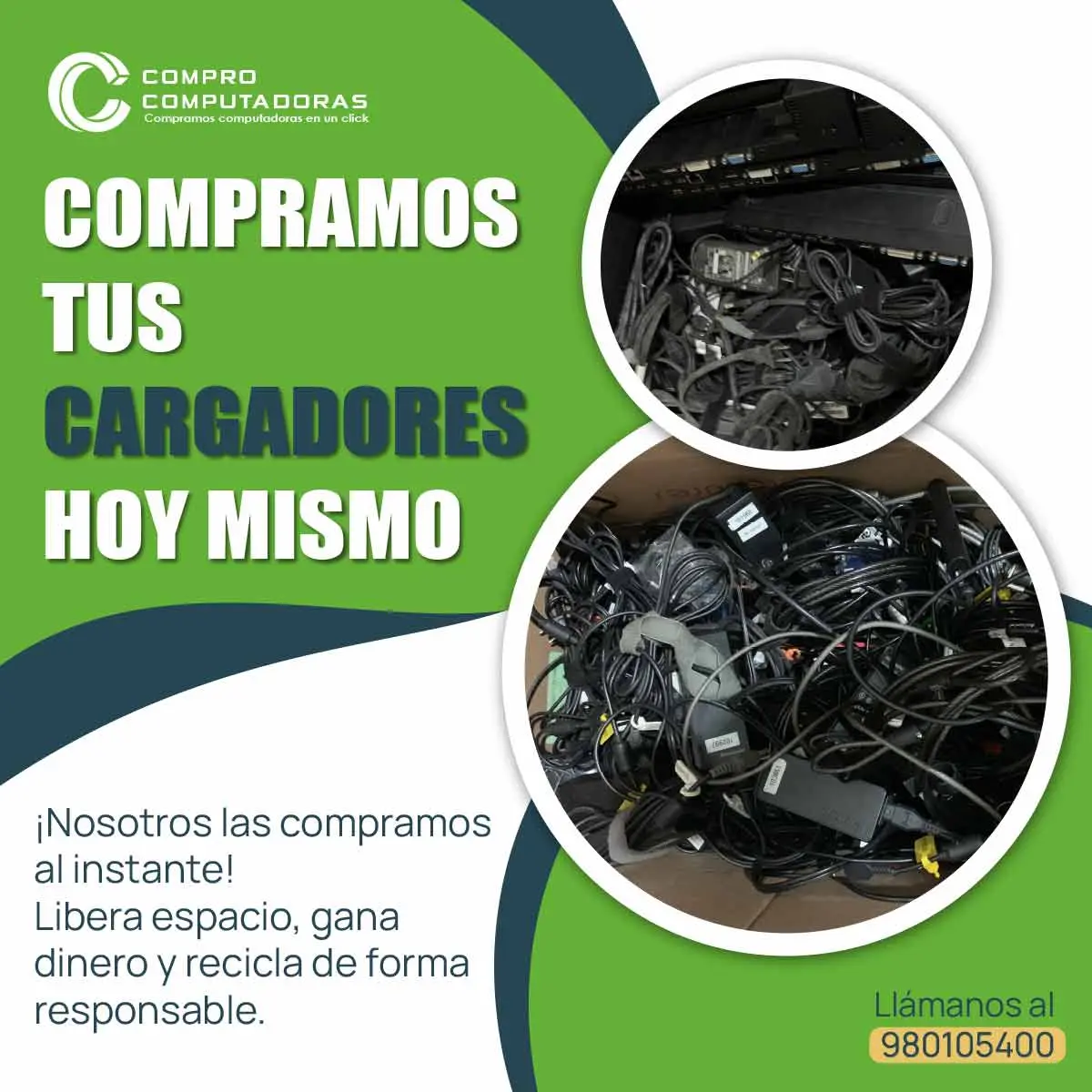 ¿Tienes cargadores en desuso ocupando espacio? ¡Nosotros los compramos! No importa si funcionan o no, te ofrecemos una solución rápida y segura en toda Lima. Libera espacio y recibe dinero al instante. Contáctanos: 980105400