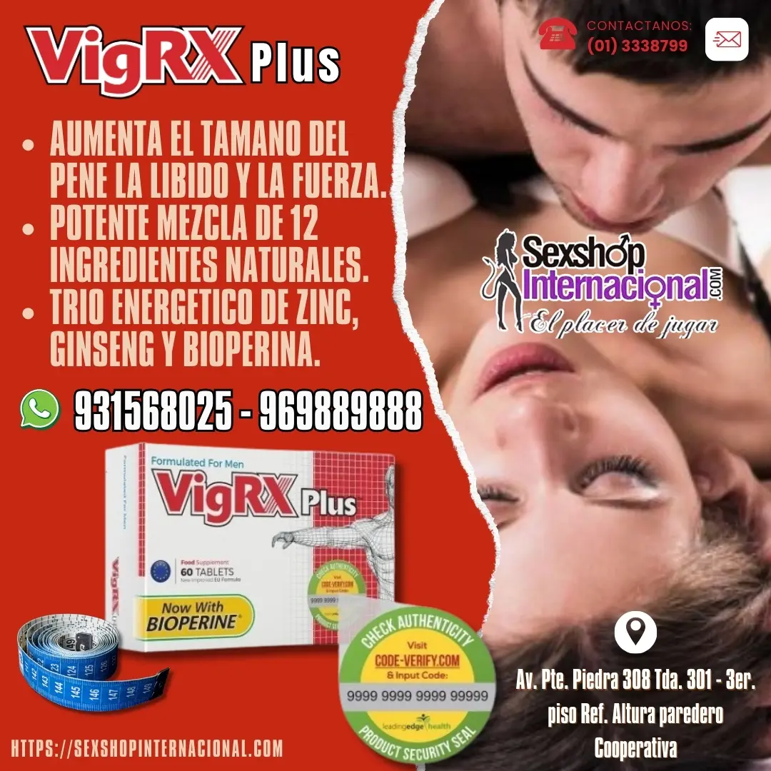 AUMENTA EL TAMAÑO, LA LIBIDO Y LA FUERZA CON DOS CÁPSULAS TODOS LOS DÍAS VigRX Plus es un suplemento de mejora masculina para desarrollar el miembro, formulado con 12 hierbas naturales elegidas por expertos. Cada uno de los doce ingredientes fue elegido para despertar tu cuerpo desde adentro, comenzando con el poderoso trío de Ginseng, Zinc y Bioperine. El único objetivo del VigRX Plus oficial es poner el control de su tamaño, vigor, poder y fuerza masculinos en sus manos, Somos una empresa confiable y discreta que te ofrece calidad en productos seleccionados por ti para que puedas disfrutar ellos. LLAMANOS AL: 969889888 - (01) 3338799 - 964 864 773 - 931568025 TE ATENDEREMOS DE LUNES A SÁBADO DE 9AM A 8PM EN PUCALLPA: Jr Tacna 748 Tienda 13 mall boulevard plaza TARAPOTO: Jr Jiménez Pimentel 179 Tienda 301- 3º piso (Costado de caja Huancayo) MIRAFLORES: Calle Cantuarias 140 Tienda 231 segúndo piso Miraflores (Altura parque Kennedy) PLAZA NORTE: Av Alfredo Mendiola 1929 Tda 201 Piso 2 (Frente a Plaza Norte) LOS OLIVOS 1 Y 2: Av Alfredo Mendiola 3849 Tienda 06 (Costado de Tambo Galería Dolaris - Frente a Metro) Jr sol de Oro 2173 Altura del Paradero Pilas (por el Mdo el Trebol Plaza Norte) PRIMERA DE PRO: Av Alfredo Mendiola 7923 (Frente al Mdo Unicachi) PUENTE PIEDRA 1 Y 2: Av Puente Piedra 241 Tienda 02 (Costado de Stanford) Av Puente Piedra 308 oficina 301 3º piso TAMBIEN NOS ENCUENTRAS EN Sexshopinternacional.com Tiendasamor.com Nutricionsexualforte.com Fantasiasexsual.com Potenciasexualforte.com Testoultraperu.com Sextoyslima.com Anabolicrx24peru.com Anabolicrx24.com Oficialtitangel.com Alfamanperu.com Testo360peru.com Vigrx.pe Vigor360oficial.com Bioprostoriginal.com