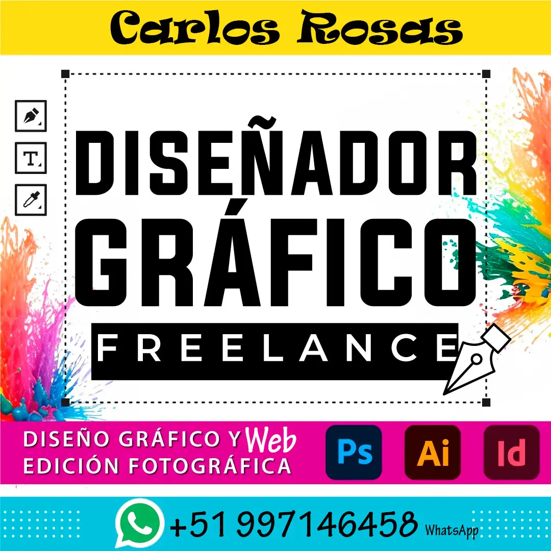 Servicio de Diseño Gráfico en la modalidad de freelance o particular, relacionados a diseños de logos, tarjetería, afiches, flyers, banners y otros tipos de publicidad gráfica y digital, y también trabajos de edición y retoques fotográficos como: restauración de imágenes, fotomontajes, cambio de fondos, collages, edición de fotos para redes sociales, etc. El servicio está dirigido a estudiantes, emprendedores, negocios y toda persona o empresa que requiera de algún trabajo de composición artística publicitaria o fotográfica. Rosas Designer