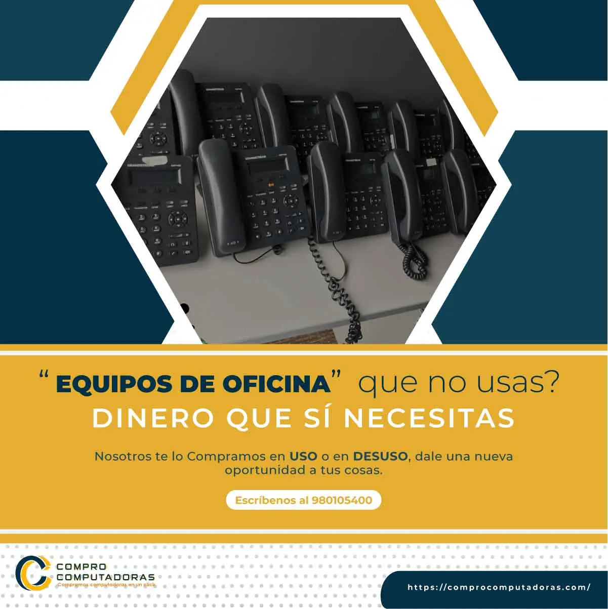¿Tienes equipos de oficina en desuso ocupando espacio? Nosotros los compramos, estén en funcionamiento o no. Ofrecemos una solución de reciclaje responsable y efectiva en toda Lima. Libera espacio, obtén dinero y renueva tu oficina con facilidad. ¡Contáctanos hoy y dale un nuevo valor a tus equipos de oficina! Teléfono/WhatsApp: 980105400