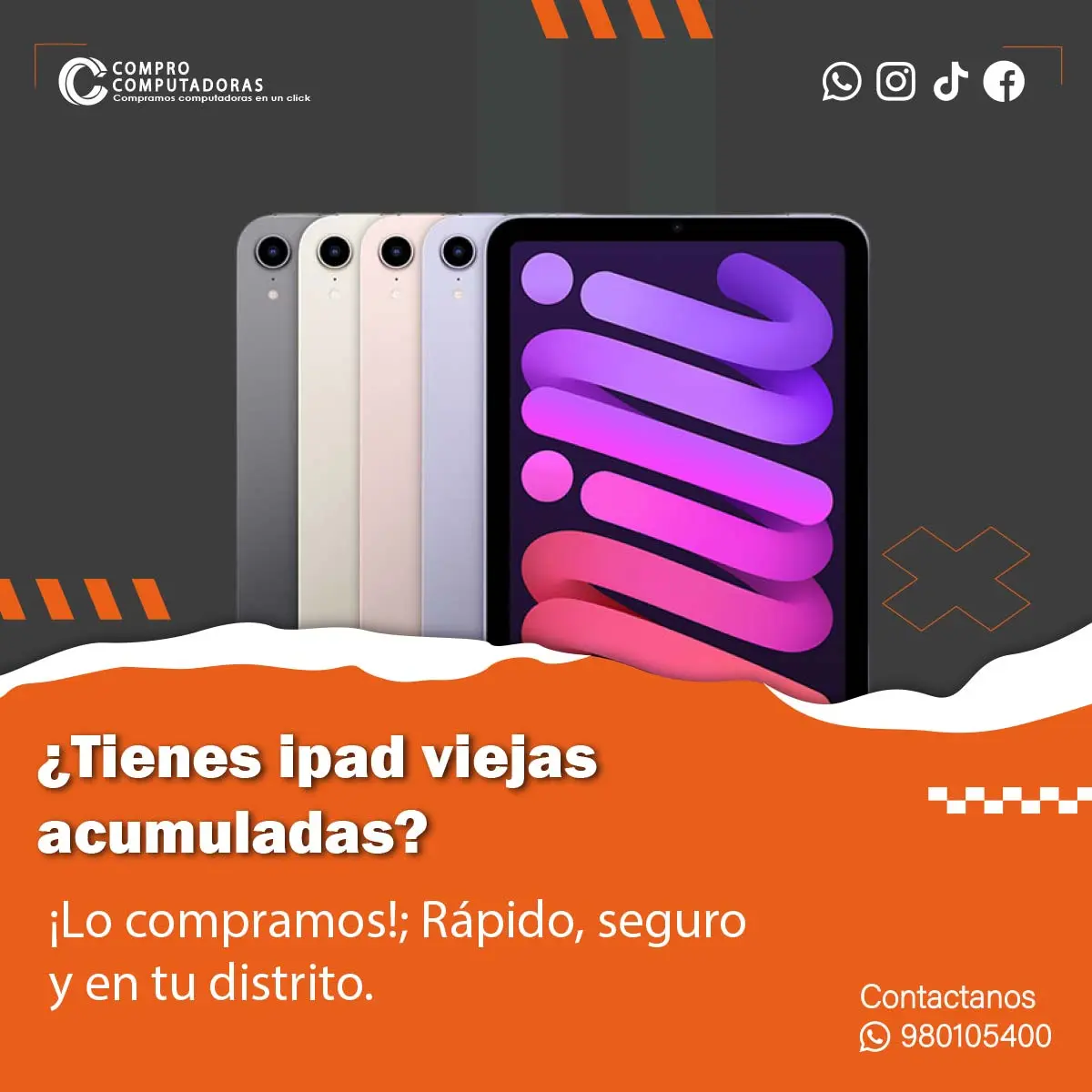 ¿Tienes iPads en desuso acumulando polvo? Nosotros los compramos, estén operativos o no. Ofrecemos una solución de reciclaje responsable y efectiva en toda Lima, ayudándote a liberar espacio y ganar dinero por tus equipos dados de baja. ¡Contáctanos hoy y dale un nuevo valor a tus iPads! Teléfono/WhatsApp: 980105400