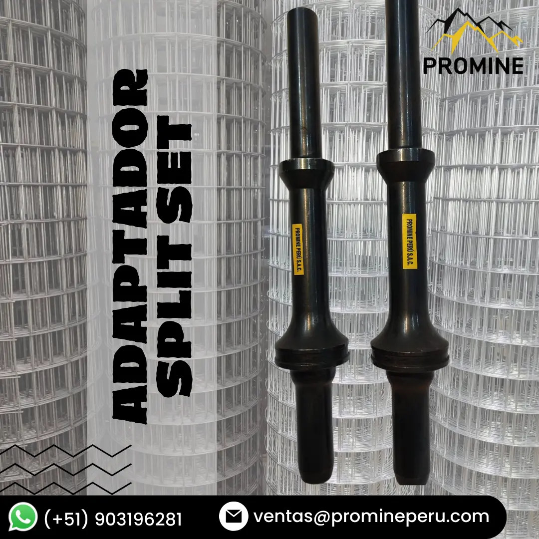 ADAPTADORES PARA SPLIT SET Están hechos de gran resistencia con insumos de alta calidad y tratamientos térmicos específicos que le otorgan a nuestro producto, un alto índice de dureza para una mayor vida útil, además están hechas a precisión para un acople perfecto. VENTAJAS Alta resistencia frente al trabajo duro De fabricación con acero resistente de calidad superior Mayor vida útil Ideal para un equipo con soporte extensible o vertical De fácil adaptación Contáctenos: PROMINE PERU Teléfono: (511) 7584483 Celular: 903196281 - 968712557 E-mail: ventas@promineperu.com AREQUIPA-PERÚ wwwpromineperu.com