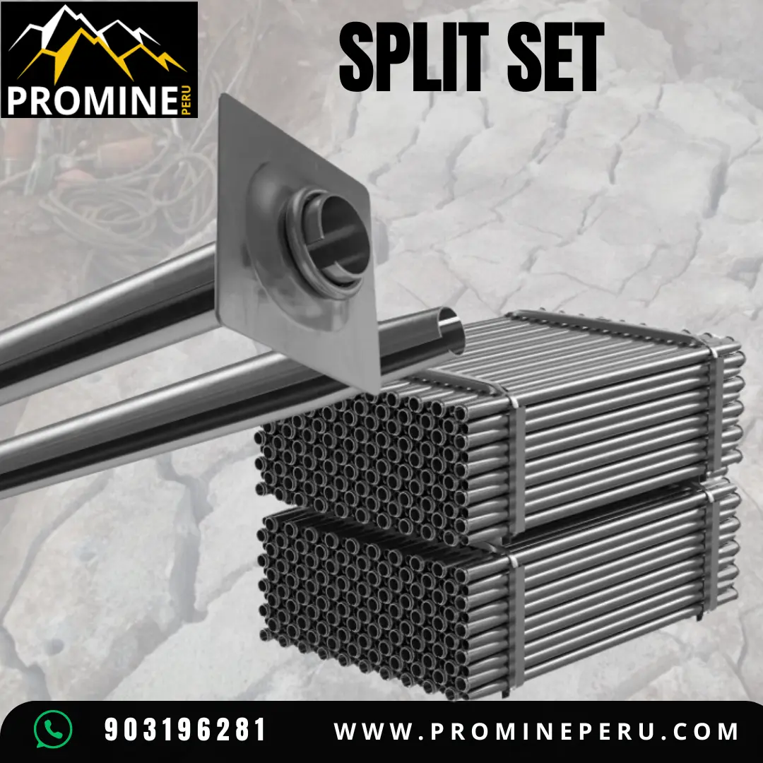 SPLIT SET "Estabilizador de fricción" El Estabilizador de Fricción SPLIT Set, es un tubo de acero ranurado, con un extremo cónico para facilitar su inserción en un taladro. El otro extremo tiene un anillo soldado para sostener la placa de apoyo. VENTAJAS: - Fácil instalación incluso con mallas. - No requiere torque ni aditivos. - Bajo Costo. - Refuerzo inmediato después de su instalación. Contáctenos: PROMINE PERU Teléfono: (511)-7584483 Celular: 903196281 - 968712557 E-mail: ventas@promineperu.com AREQUIPA-PERÚ www.promineperu.com