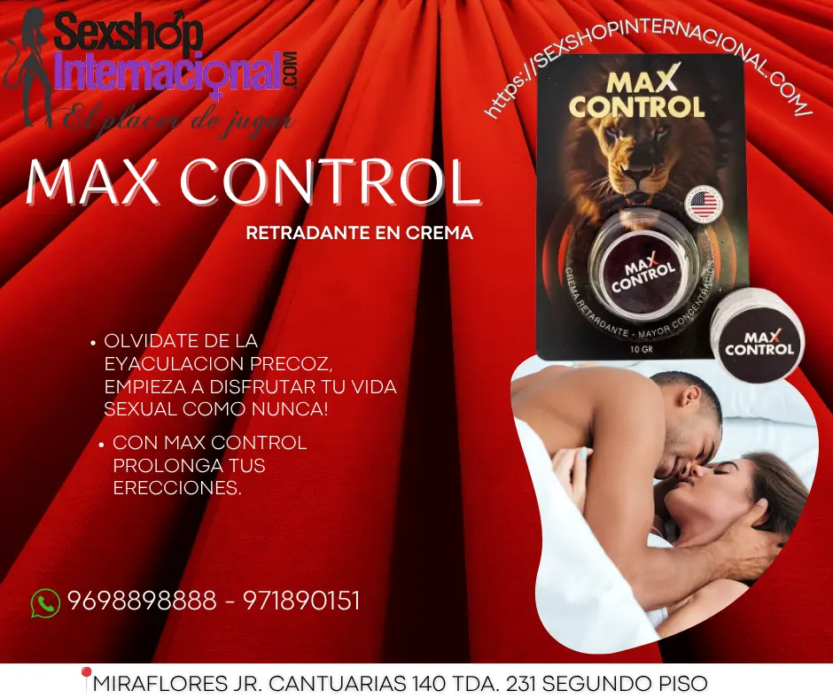 ¡Hola! Si estás buscando una solución efectiva para retrasar la eyaculación, esta crema Max Control es justo lo que necesitas. La aplicación es súper sencilla, solo pones un poco en la cabeza del pene unos minutos antes y ¡listo! La idea es que puedas disfrutar más tiempo en la intimidad sin preocuparte por la eyaculación precoz. La verdad es que a mí me ha funcionado bastante y me ha dado más confianza en esos momentos especiales. Además, el producto viene en una presentación práctica y discreta, perfecta para llevar a cualquier lado. Si quieres mejorar tu rendimiento y disfrutar sin estrés, te recomiendo que le des una oportunidad. ¡No te vas a arrepentir!Recuerda que en nuestra web SEXSHOPINTERNACIONAL.COM puedes encontrar más productos similares y asesoría personalizada. Nos encanta ayudar a nuestros clientes a sentirse mejor en su vida sexual. ¡Anímate y prueba esta crema, te va a encantar! MIRAFLORES JR. CANTUARIAS 140 TDA.231 SEGUNDO PISO ENCIOS A TODO EL PERU! 969889888 971890151