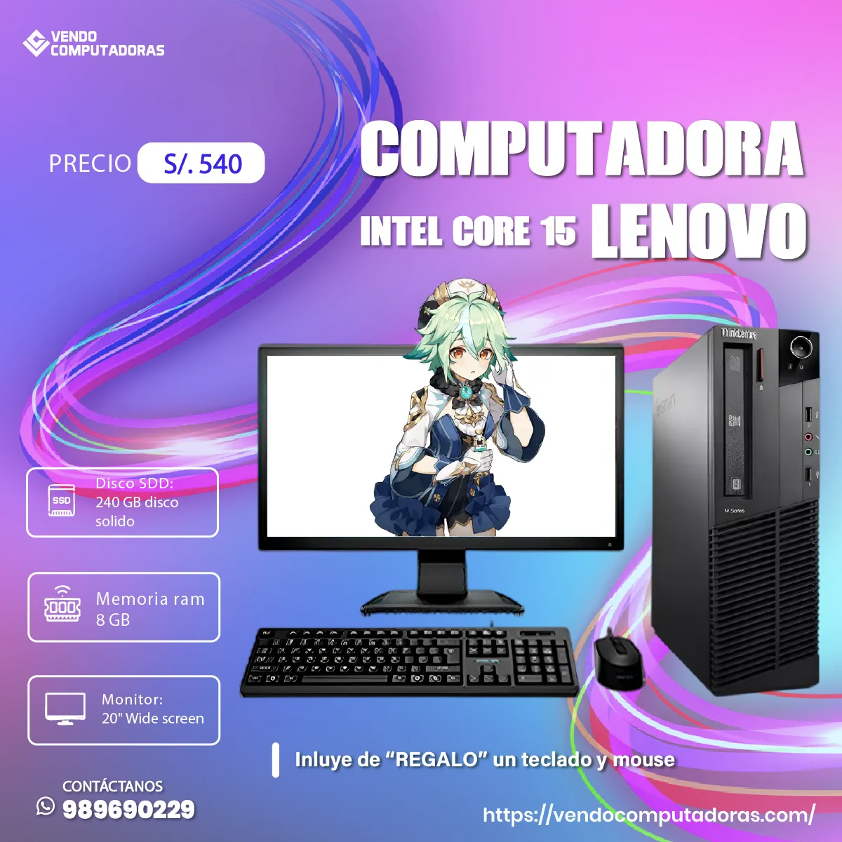¡TU NUEVA PC TE ESPERA! POTENTE, COMPLETA Y LISTA PARA USAR Intel Core i5 Rendimiento veloz desde el primer encendido 8GB RAM Perfecta para multitareas sin interrupciones 240GB SSD Arranques rápidos y espacio seguro Monitor Samsung LED 20 Imagen amplia y nítida ¡INCLUYE TECLADO Y MOUSE TOTALMENTE GRATIS! PRECIO ESPECIAL: S/.540 Ideal para oficina, estudios o uso diario ¡Unidades limitadas! No te quedes sin la tuya ¿Interesado? ¡Envíanos un mensaje ahora mismo!