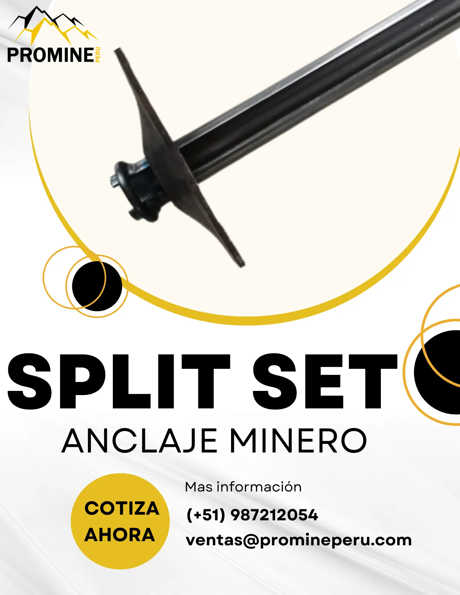 Sistema de anclaje de fricción para túneles y minería subterránea. Fácil instalación, refuerzo inmediato y máxima seguridad en sostenimiento de macizos rocosos. Disponible en diferentes medidas. PROMINE Consultas: Móvil | WhatsApp Celular: 944866818 - https://wa.link/upomm4 Correo: ventas@promineperu.com