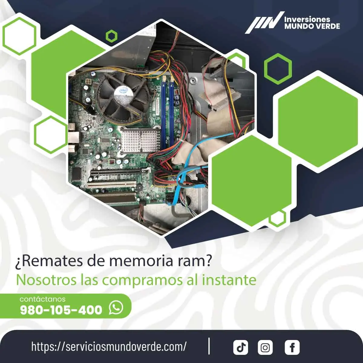 ¿Tienes memorias RAM en desuso o fuera de funcionamiento? ¡Nosotros las compramos! Adquirimos memorias RAM de todo tipo y capacidad, ya sean DDR2, DDR3, DDR4 o DDR5, estén operativas o no. Brindamos una solución de reciclaje segura, rápida y responsable en toda Lima. Compramos memorias individuales o en lote Pago inmediato Retiro en oficinas, almacenes o domicilio Contáctanos hoy y dale un valor renovado a tus componentes electrónicos. Servicio Mundo Verde 980105400