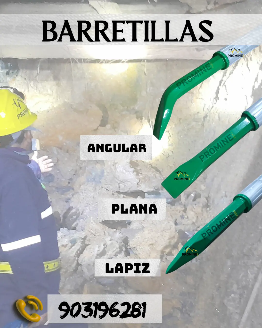 BARRETILLAS DE ALUMINIO Este producto está fabricado a base de un tubo de aleación especial de aluminio y prensadas en ambos extremos o puntas. Se caracterizan por ser livianas y ergonómicas para su fácil uso. Su principal función es prevenir la caída de las rocas e las excavaciones subterráneas. Disponible en longitudes de 4 a 14 pies. Ventajas Gran maniobrabilidad por su diseño ergonómico. Su fabricación a partir de aluminio liviano de alta resistencia, provee gran durabilidad. Contáctenos: PROMINE PERU Teléfono: (511) 7584483 Celular: 903196281 - 968712557 E-mail: ventas@promineperu.com AREQUIPA-PERÚ wwwpromineperu.com