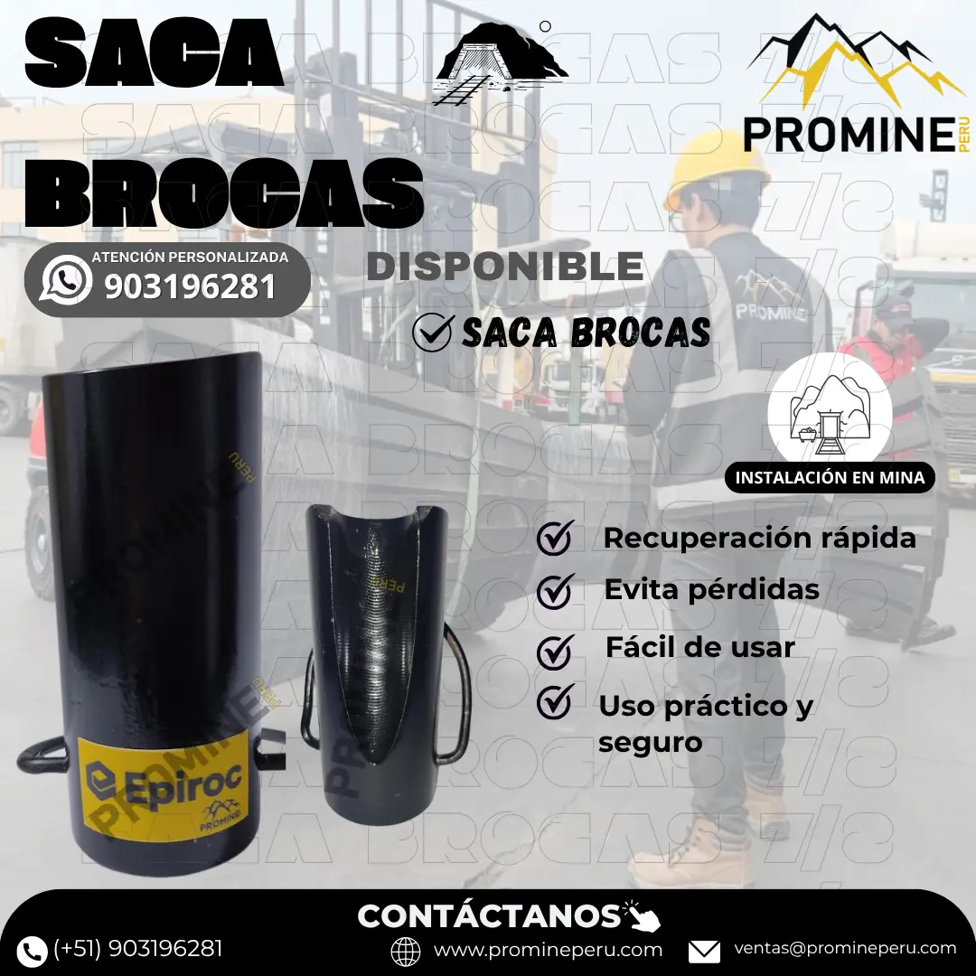 SACABROCAS Con las aberturas en sus extremos, se inserta en la barra cónica y extrae la broca. Previene el golpe directo a la broca y rupturas en la barra. Contáctenos: PROMINE PERU Teléfono: (511) - 7584483 Celular: 903196281 E-mail: ventas@promineperu.com AREQUIPA-PERÚ Www.promineperu.com