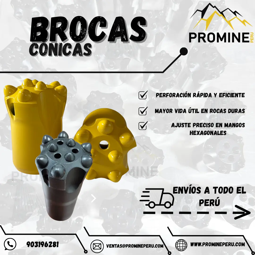 BROCAS EPIROC- SANDVIK -BOART LONG YEAR Es una herramienta que permite la perforación de roca mixta como yacimientos petrolíferos, pozos geotermales y roca dura, lo que las hace capaces de soportar un mayor impacto, por lo tanto, nos ofrece un menor torque y una mayor flexibilidad Las brocas están compuestas por una aleación de carburo de tungsteno son para alta capacidad de carga y resistencia a la abrasión. Las brocas de botón con botón cónico o botón parabólico son para alta velocidad de perforación y baja resistencia a la abrasión. Contáctenos: PROMINE PERU Teléfono: (511)-7584483 Celular: 903196281 - 968712557 E-mail: ventas@promineperu.com AREQUIPA-PERÚ www.promineperu.com