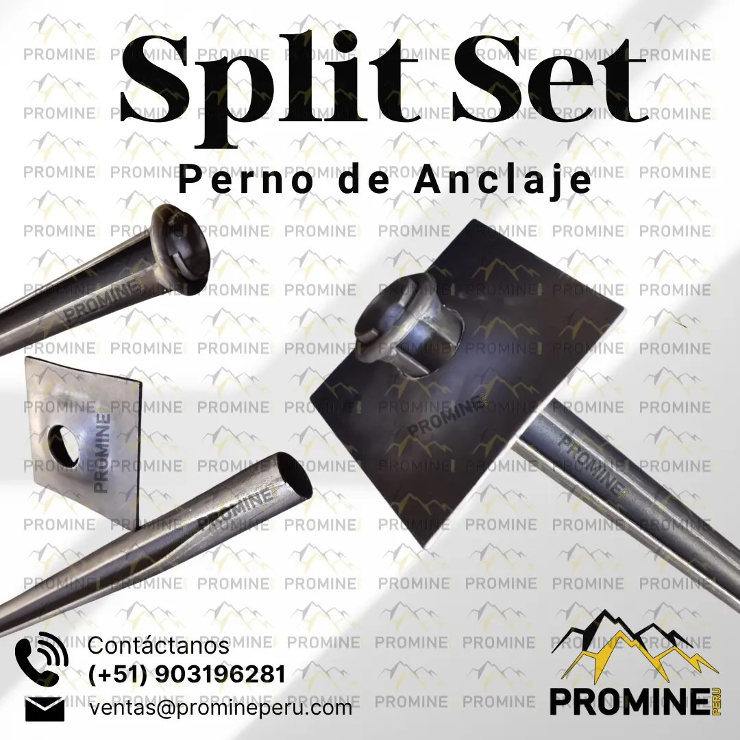 SPLIT SET "Estabilizador de fricción" El Estabilizador de Fricción SPLIT Set, es un tubo de acero ranurado, con un extremo cónico para facilitar su inserción en un taladro. El otro extremo tiene un anillo soldado para sostener la placa de apoyo. VENTAJAS: - Fácil instalación incluso con mallas. - No requiere torque ni aditivos. - Bajo Costo. - Refuerzo inmediato después de su instalación. Contáctenos: PROMINE PERU Teléfono: (511)-7584483 Celular: 903196281 - 968712557 E-mail: ventas@promineperu.com AREQUIPA-PERÚ www.promineperu.com