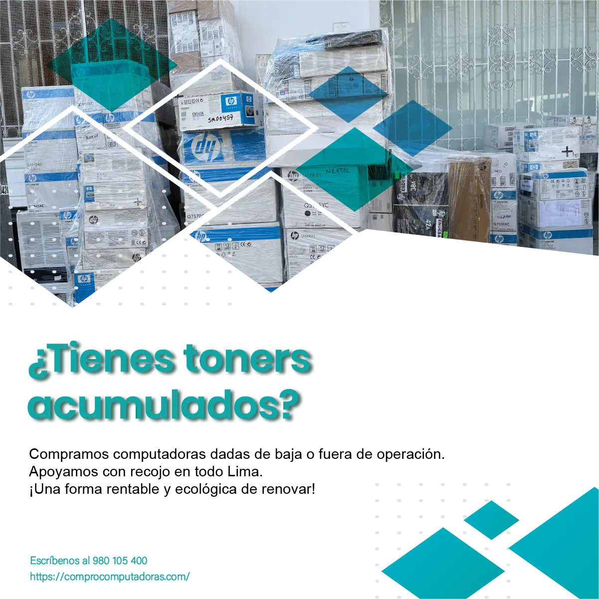 ¿Tienes tóners usados o en desuso ocupando espacio? ¡Nosotros los compramos! Ya sea que estén vacíos, vencidos o fuera de uso, les damos una segunda vida con un proceso de reciclaje responsable. Recogemos en toda Lima Pago inmediato Sin complicaciones, sin pérdida de tiempo Contáctanos hoy mismo al 980105400 y transforma tus tóners acumulados en dinero en efectivo.