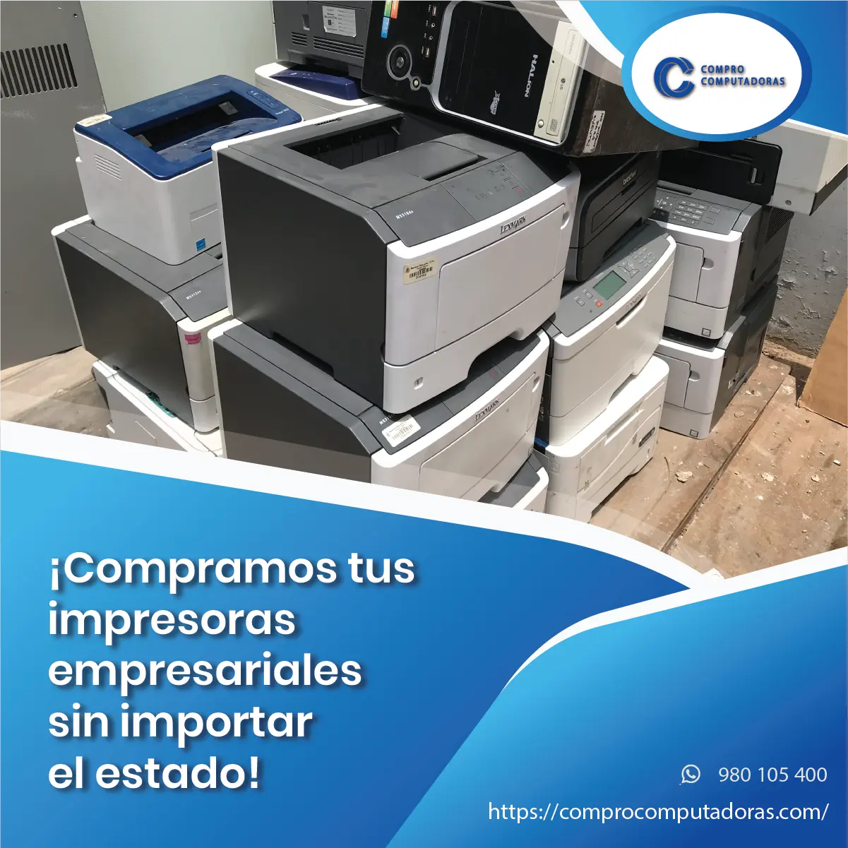 ¿Tienes impresoras en desuso ocupando espacio? ¡Nosotros las compramos! Ya sean multifuncionales, láser, de tinta, en uso o malogradas, les damos un destino útil y responsable. Especialistas en reciclaje de impresoras en toda Lima, con retiro rápido y pago inmediato. Compramos impresoras de todo tipo y marca Recogida a domicilio o en oficina Pago inmediato en efectivo Reciclaje certificado y seguro Contáctanos hoy y libera espacio al instante: 980105400 ¡Convierte tus impresoras usadas en dinero!