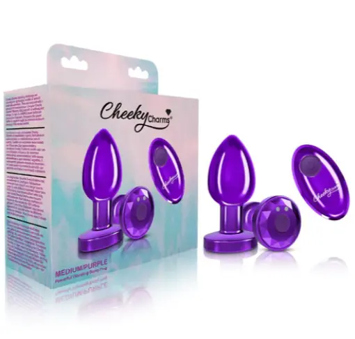 Cheeky Charms Plug Vibrador de Metal Morado Mediano con Control Remoto de Viben. Viben Cheeky Charms es una colección de vibrantes y seductores tapones anales metálicos, cada uno de los cuales presenta una hermosa piedra preciosa acrílica. Estos plugs anales son ideales para jugar y para cualquiera que quiera decorar su entrada trasera. Cónico para una fácil inserción y diseñado con una base acampanada y un tallo delgado. Los tapones anales Cheeky Charms son cómodos de usar durante un período prolongado de tiempo. Usable durante las relaciones sexuales para lograr una sensación de plenitud. Cheeky Charms son las joyas perfectas para el trasero de mujeres, hombres, parejas y también para jugar en solo. Enchufe ligero. Fácil de limpiar. Cómo limpiar con limpiador de juguetes o agua tibia y un jabón desinfectante suave antes y después de cada uso. Aptas para el lavavajillas. Seque con una toalla o al aire antes de guardarlo. Conservar en un lugar limpio, fresco y seco. Plug anal resistente al agua y sin vibración. Certificado RoHS. Cumple con la Proposición 65. Garantía limitada de 1 año. Potente tapón anal de metal vibrante con control remoto resistente al agua para jugar fuera del dormitorio. Recargable por USB. Materiales: tapón anal de aluminio, control remoto de plástico ABS, piedra preciosa acrílica. Tamaño 7 cms de largo por 45 mm de ancho. Viben Toys ofrece una garantía limitada del fabricante de un año. Categorías: Juguetes Anales, Plugs Anales Pequeños y Medianos, Vibradores, Vibradores Recargables. 1 Año De Garantia