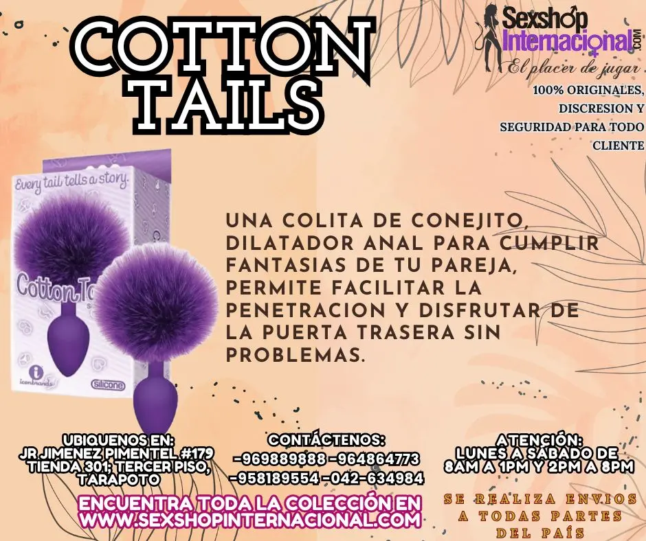 Envios a todas partes del país. plug anales colita de conejo suaves dilatadores tarapoto sextoys UNA COLITA DE CONEJITO, DILATADOR ANAL PARA CUMPLIR FANTASIAS DE TU PAREJA, PERMITE FACILITAR LA PENETRACION Y DISFRUTAR DE LA PUERTA TRASERA SIN PROBLEMAS. Visitenos en nuestra tienda y velo por ti mismo, que no te lo cuenten. SEXSHOP INTERNACIONAL TARAPOTO Nos puede ubicar en el Jr. Jimenez Pimentel #179 Tienda -301 Tercer Piso- TARAPOTO-PERU REF:ALTURA PLAZA DE ARMAS COSTADO DE CAJA HUANCAYO Realizamos envíos a nivel nacional e internacional. https://sexshopinternacional.com/ www.sextoyslima.com www.tiendasamor.com www.fantasiasexsual.com