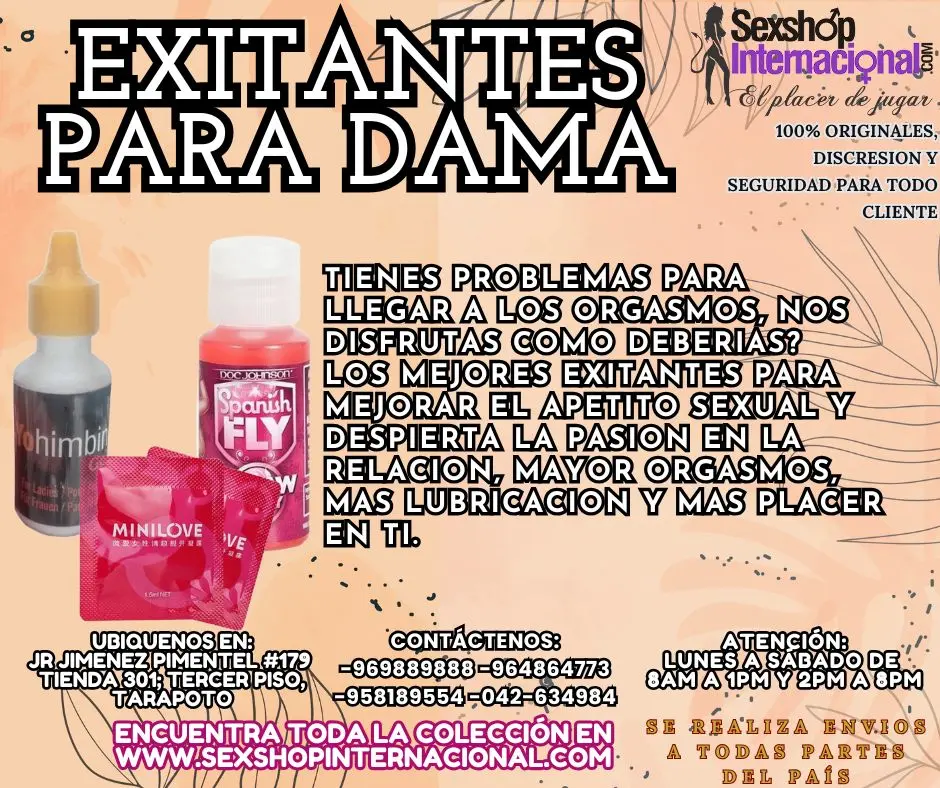 Envios a todas partes del país. MEJORA LOS ORGASMOS PARA TU INTIMIDAD EN TARAPOTO SEXTOYS TIENES PROBLEMAS PARA LLEGAR A LOS ORGASMOS, NOS DISFRUTAS COMO DEBERIAS? LOS MEJORES EXITANTES PARA MEJORAR EL APETITO SEXUAL Y DESPIERTA LA PASION EN LA RELACION, MAYOR ORGASMOS, MAS LUBRICACION Y MAS PLACER EN TI. Visitenos en nuestra tienda y velo por ti mismo, que no te lo cuenten. SEXSHOP INTERNACIONAL TARAPOTO Nos puede ubicar en el Jr. Jimenez Pimentel #179 Tienda -301 Tercer Piso- TARAPOTO-PERU REF:ALTURA PLAZA DE ARMAS COSTADO DE CAJA HUANCAYO Realizamos envíos a nivel nacional e internacional. https://sexshopinternacional.com/ www.sextoyslima.com www.tiendasamor.com www.fantasiasexsual.com