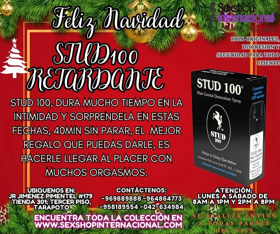 Envios a todas partes del país. RETARDANTE STUD100 PREVIENE EYACULACION PRECOZ TARAPOTO SEXTOYS STUD 100, DURA MUCHO TIEMPO EN LA INTIMIDAD Y SORPRENDELA EN ESTAS FECHAS, 40MIN SIN PARAR, EL MEJOR REGALO QUE PUEDAS DARLE, ES HACERLE LLEGAR AL PLACER CON MUCHOS ORGASMOS. Visitenos en nuestra tienda y velo por ti mismo, que no te lo cuenten. SEXSHOP INTERNACIONAL TARAPOTO Nos puede ubicar en el Jr. Jimenez Pimentel #179 Tienda -301 Tercer Piso- TARAPOTO-PERU REF:ALTURA PLAZA DE ARMAS COSTADO DE CAJA HUANCAYO Realizamos envíos a nivel nacional e internacional. https://sexshopinternacional.com/ www.sextoyslima.com www.tiendasamor.com www.fantasiasexsual.com