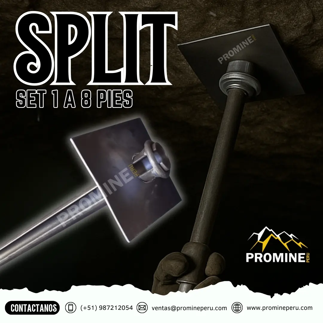 Los Split Set son dispositivos de refuerzo muy utilizados en operaciones mineras subterráneas gracias a su capacidad para brindar un anclaje inmediato y uniforme en distintos tipos de roca. Estos pernos consisten en un tubo de acero de gran fortaleza que incorpora una ranura longitudinal, característica que facilita su compresión durante la instalación. Al ser colocado a presión dentro de una perforación con un diámetro ligeramente inferior, el tubo se expande y se adhiere firmemente a las paredes del taladro, generando una fricción constante a lo largo de toda la pieza. PROMINE Consultas: Móvil | WhatsApp Celular: 987212054 - https://wa.link/7h770l Correo: ventas@promineperu.com