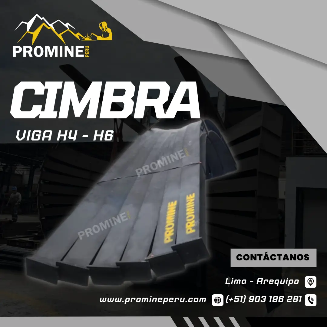 CIMBRAS EN VIGA H Son estructuras metálicas fabricadas en acero como soporte rígido, cuya función es otorgar inmediata seguridad, acoplándose lo más posible a la línea de excavación en el frente de avance del túnel. Contáctenos: PROMINE PERU Teléfono: (511) - 7584483 Celular: 903196281 - 968712557 E-mail: ventas@promineperu.com AREQUIPA-PERÚ www.promineperu.com