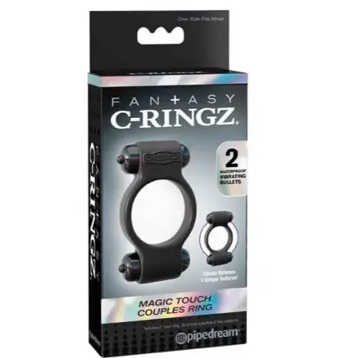 ANILLO VIBRADOR FANTASY C-RINGZ MAGICO. Obtén el toque justo de satisfacción con el anillo Parejas Magic Touch, este doble acción anillo vibrador fácilmente se extiende por el máximo confort y resultados aprobados. Lo que realmente hace que este anillo mágico tenga las texturas únicas a cada lado de las balas vibradoras. Con una bala vibradora en la parte superior y la parte inferior del anillo, ambos socios se sorprenderá por las sensaciones increíbles. Las poderosas vibraciones hacen cosquillas al clítoris su pene en una máquina de placer instantáneo, se puede disfrutar en plena confianza con lubricantes a base de agua. CODIGO: PD5906-23 Material silicona Longitud 4,5 cm Vibraciones múltiples Fabricado por pipedream Hecho en estados unidos.