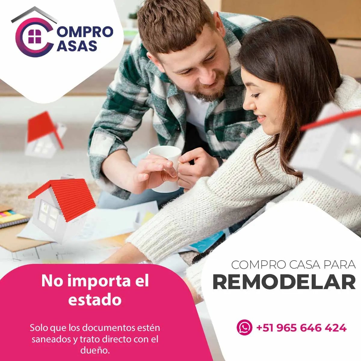 Experiencia, seriedad y respaldo legal en cada operación. - Recibe una cotización rápida, compramos todo tipo de casas. - Acepta y recibe tu pago de inmediato - Llamanos o escribenos: 51 965 646 424