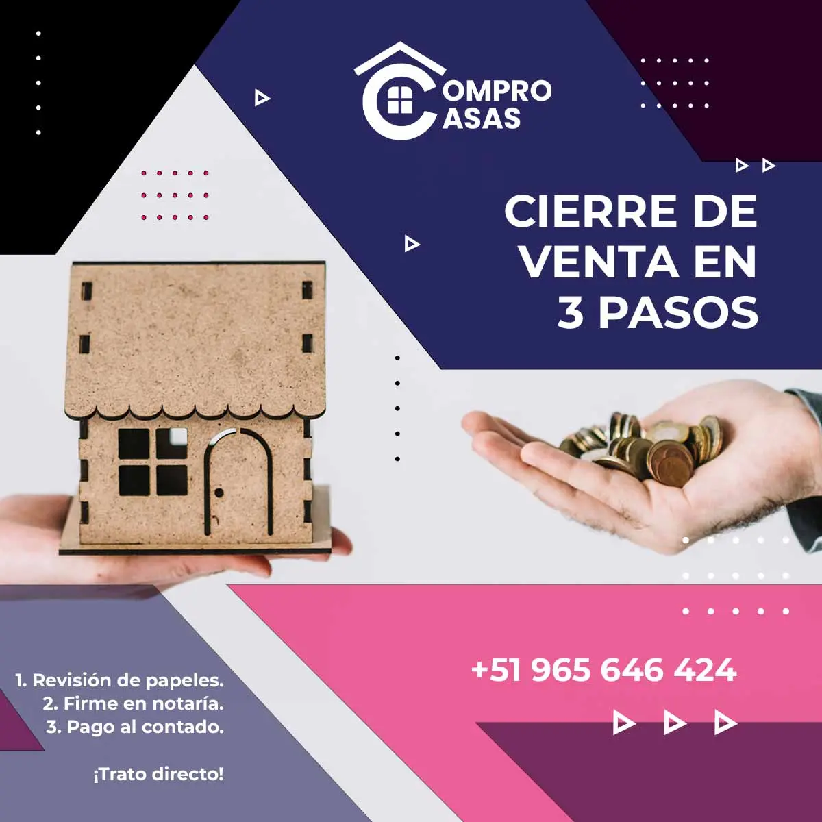 Antiguas, nuevas o por remodelar. - Recibe una cotización rápida, compramos todo tipo de casas. - Acepta y recibe tu pago de inmediato - Llamanos o escribenos: 51 965 646 424
