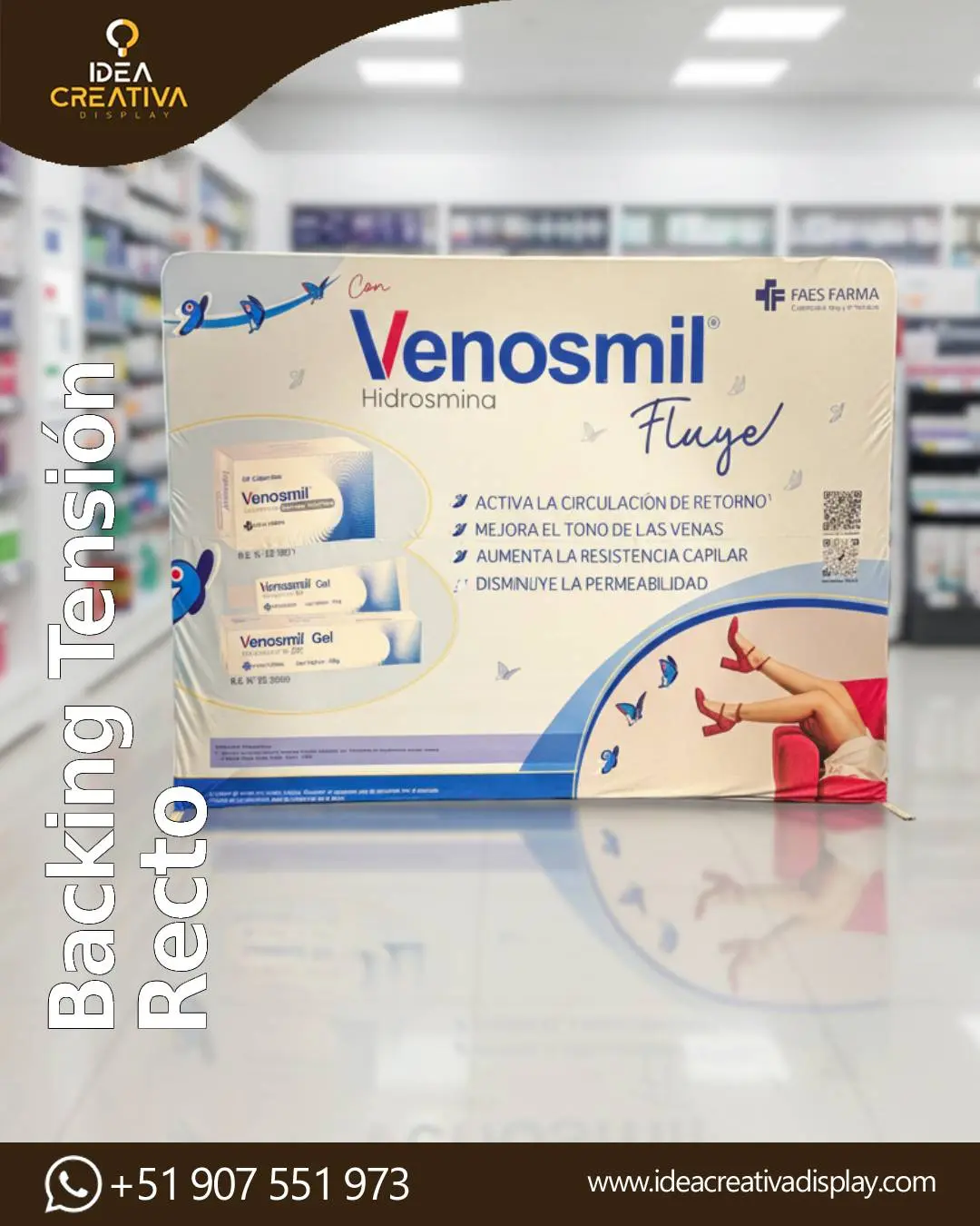 ¿Busca un fondo publicitario que no se arrugue y sea fácil de armar? El Backing de Tensión Recto es la solución moderna y profesional que reemplaza a los pesados sistemas antiguos. Ideal para ferias, conferencias, estudios de video y eventos corporativos B2B. ¿Qué lo hace diferente? Acabado Perfecto: La gráfica textil se ajusta como un "guante" sobre la estructura, eliminando cualquier arruga o pliegue. Armado Express: Estructura tubular de aluminio con conectores numerados. ¡Listo en 5 minutos sin herramientas! Gráfica de Alta Calidad: Tela "Power Stretch" lavable, mate (evita reflejos de cámaras) e impresión por sublimación. Fácil Transporte: Todo el sistema cabe en una maleta pequeña, ultra ligero para viajes nacionales e internacionales.