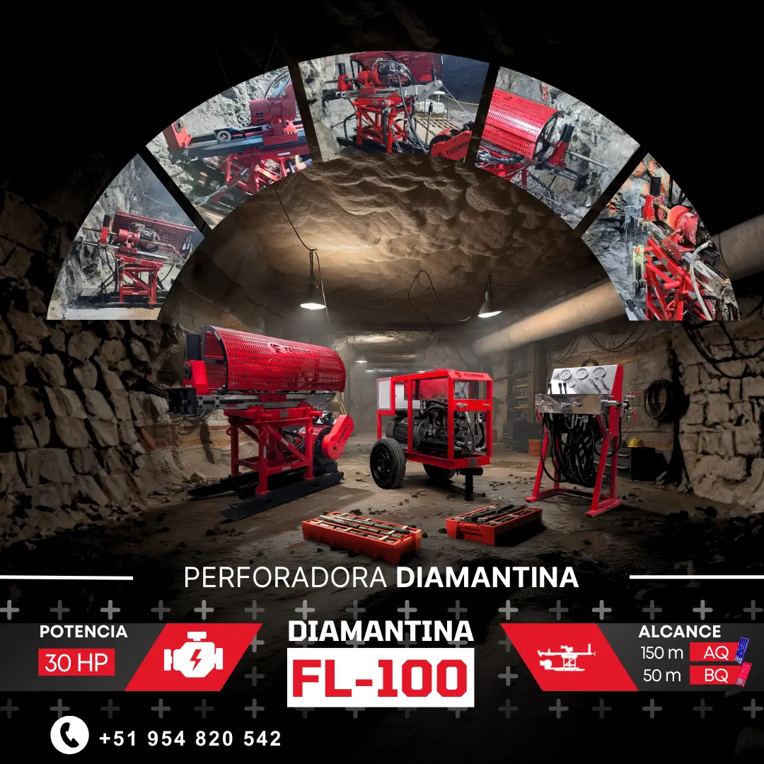PACKSACK NEUMÁTICA FL-50 Es una máquina de perforación diamantina con un alcance de 50 metros, diámetro de muestra de 23 mm y una potencia de 8.6 HP. Ideal para exploraciones en subsuelo, estudios geológicos y muestreo de terreno. Garantizamos el stock permanente de accesorios y repuestos originales para nuestros equipos diamantina. CARACTERÍSTICAS: Alcance: XRP - 50 m Testigo: Ø 23 mm Motor: Neumático 8.6 HP (3000 RPM) Cabezal: Convencional Ángulo: Positivo / Negativo (90°) Cámara: 2.2 m x 2.2 m x 2.2 m